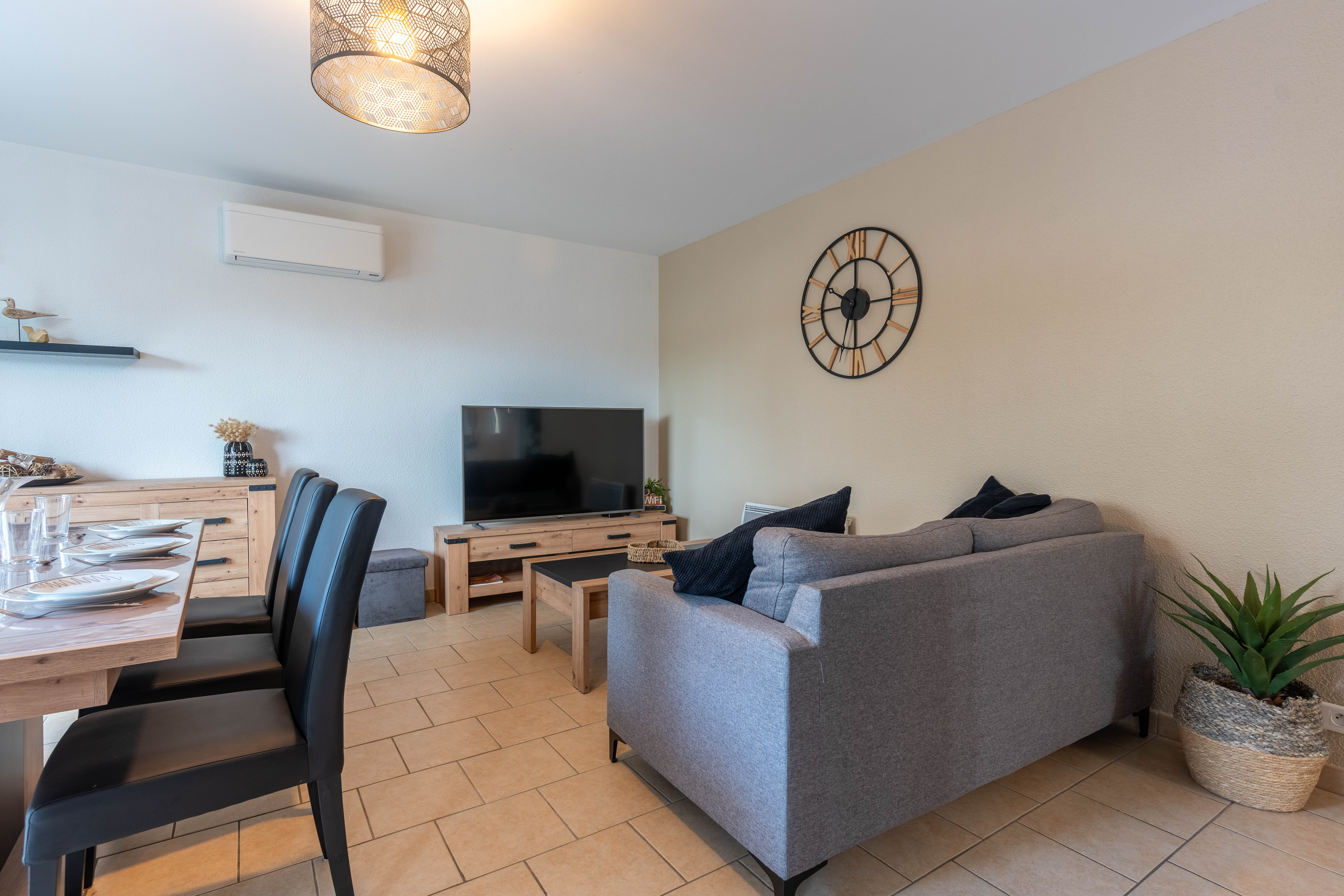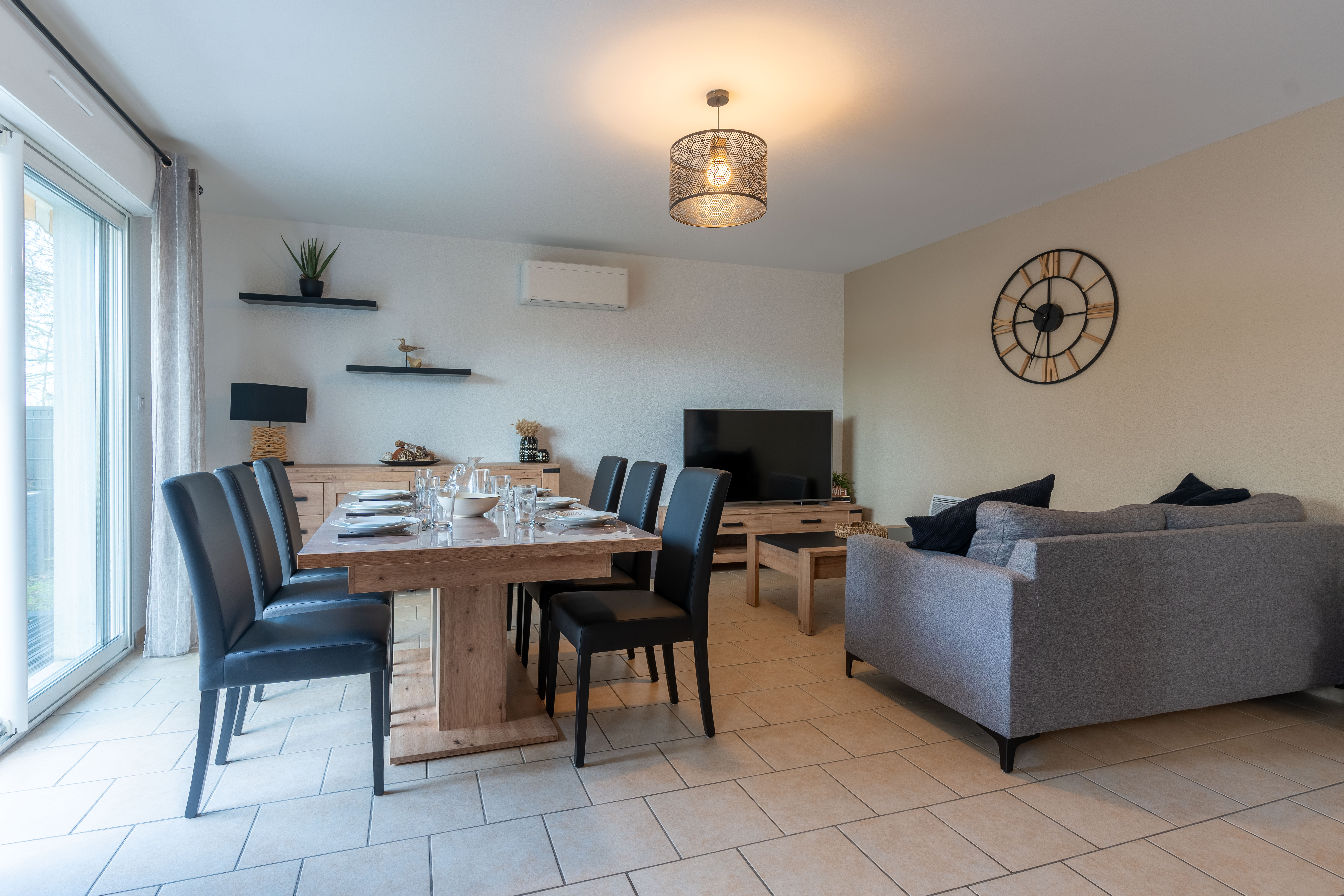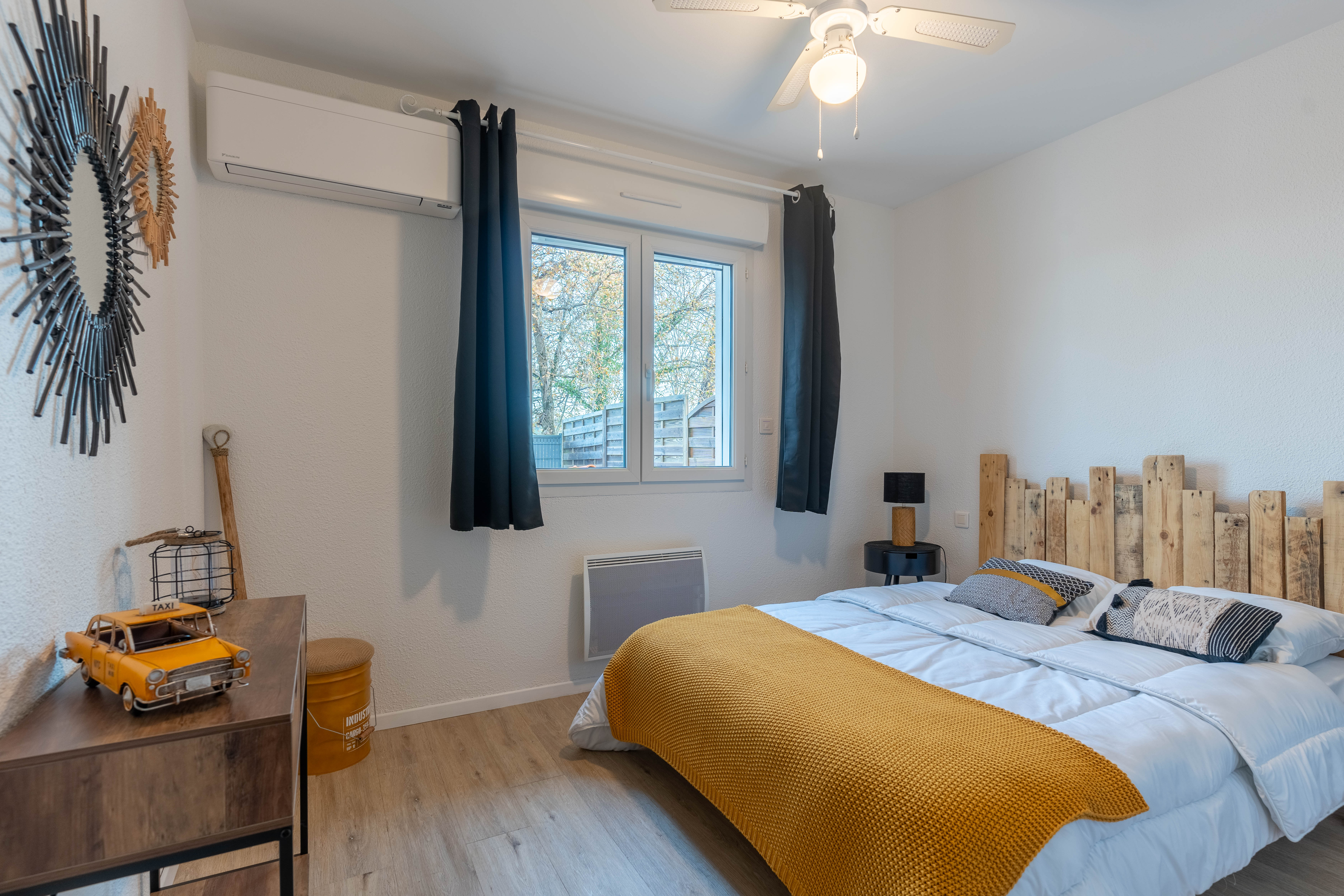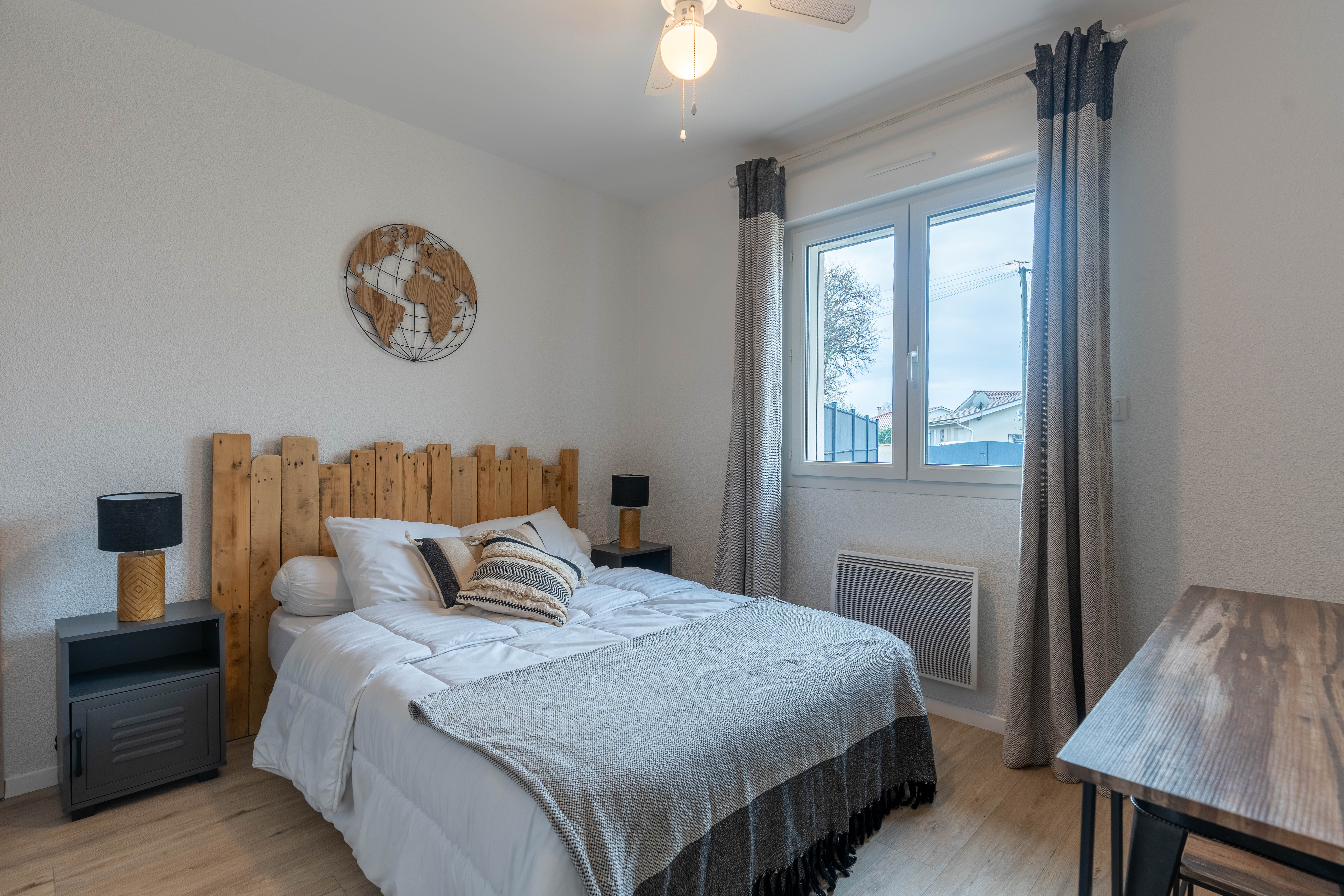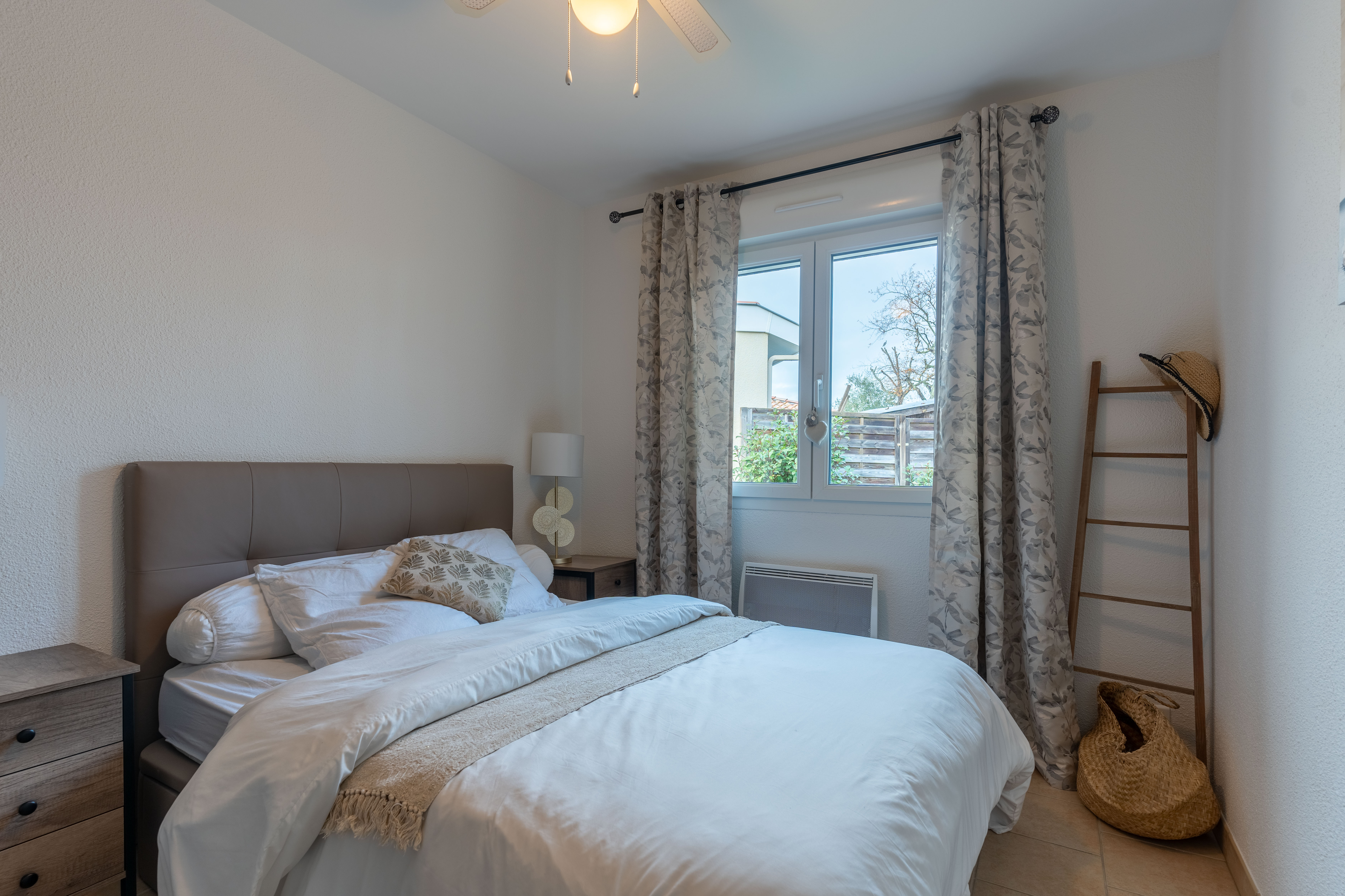Nous vous proposons une agréable maison individuelle de 75m² avec jardin et clim réversible à Biscarrosse Bourg. Idéalement située, vous êtes à 1.4km du centre-ville, vous êtes également à 3.3km du lac de Latécoère. Vous pourrez vous rendre à vélo au lac, parfait pour faire du bateau ou du paddle en famille ou entre amis et découvrir nos jolies pistes cyclables landaises. Vous êtes également à 10km de l'océan pour prendre vos cours de surf ou vous relaxer sur la plage. La maison est composée d'une entrée amenant sur la pièce principale : un coin salon aménagé d'un canapé et d'une table basse, TV avec WIFI, plusieurs jeux de société ainsi qu'un coin salle à manger avec une grande table. La cuisine est ouverte et équipée (four, bouilloire , hotte, cafetière, lave-vaisselle…). Trois chambres, toutes composées d'un lit en 140 et de rangements ainsi que de luminaires avec ventilateurs. Une salle d'eau et un WC séparé pour plus de confort. Un cellier/buanderie avec lave-linge. Plusieurs équipements bébés sont disponibles ( lit, baignoire, chaise haute ) Vous pourrez également profiter d'une jolie terrasse avec salon de jardin, un étendage ainsi qu'un barbecue et d'un jardin paysagé. Possibilité de garer votre voiture dans l'enceinte de la propriété. Vous vous garer en arrivant et vous pouvez si vous le souhaitez partir à vélo pour faire le marché, boire un café en terrasse, pour les plus sportifs pédaler jusqu’à l’océan pour profiter du coucher de soleil et manger dans nos restaurants pieds dans le sable. Des vacances ensoleillé n'attendent que vous !