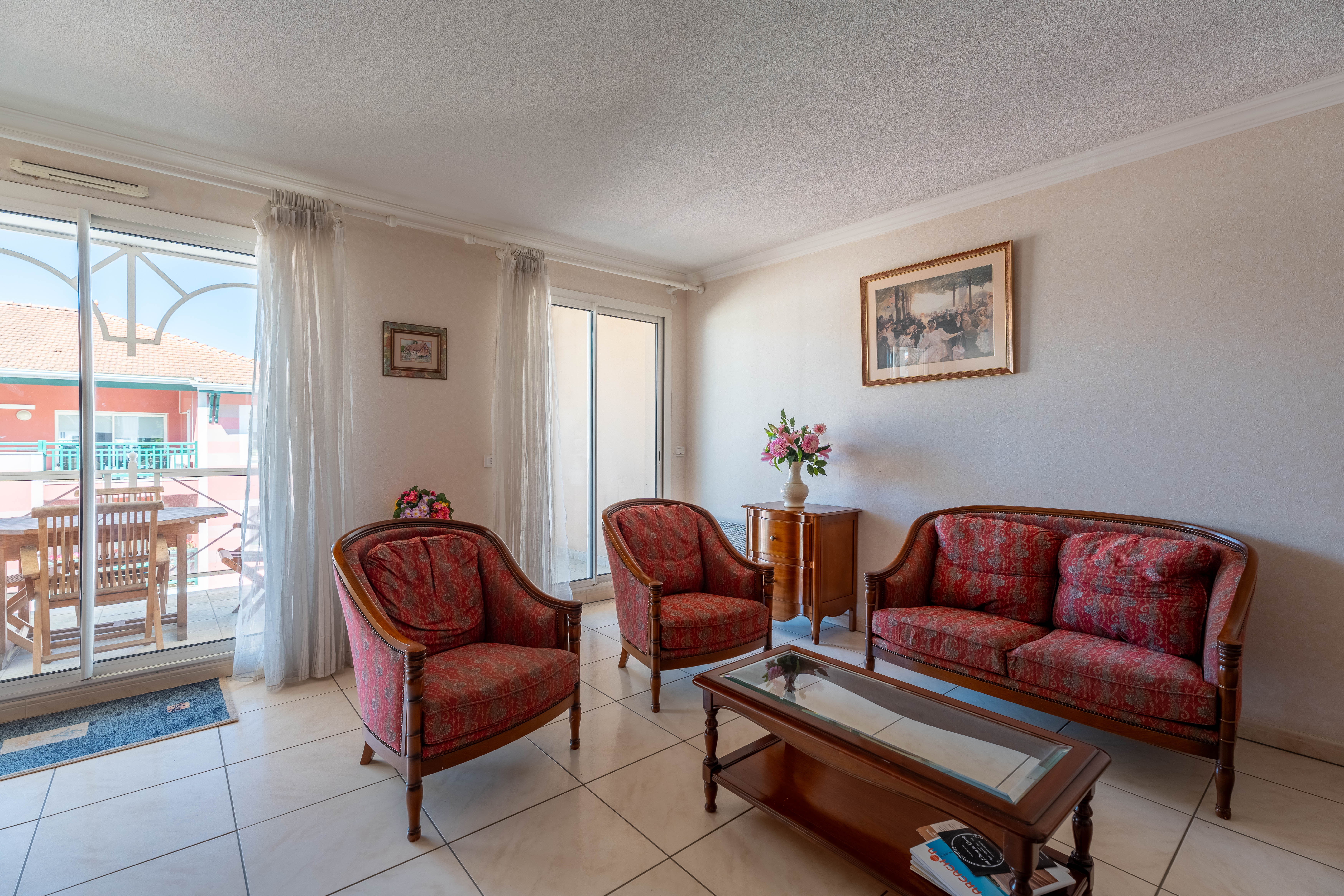 Son entrée avec un grand cellier. Une pièce à vivre avec son coin salon, TV (ce logement ne possède pas de WIFI) et son coin repas donnant sur un grand balcon pour profiter des repas en extérieur à partager entre amis ou en famille.