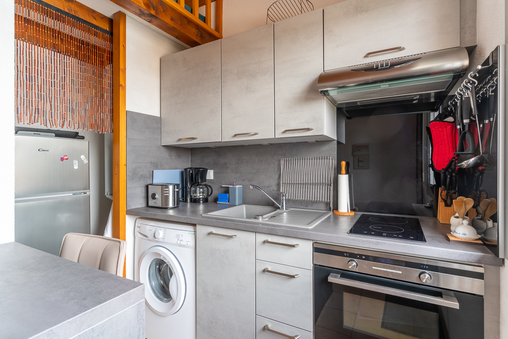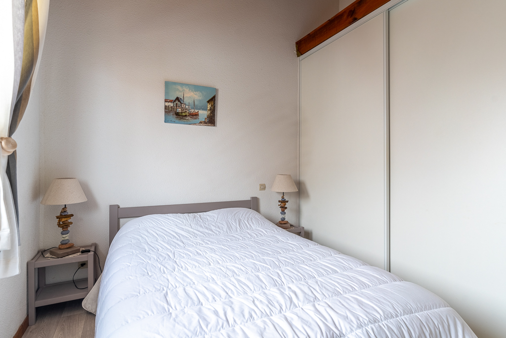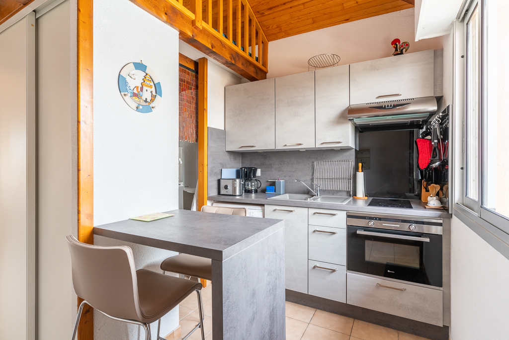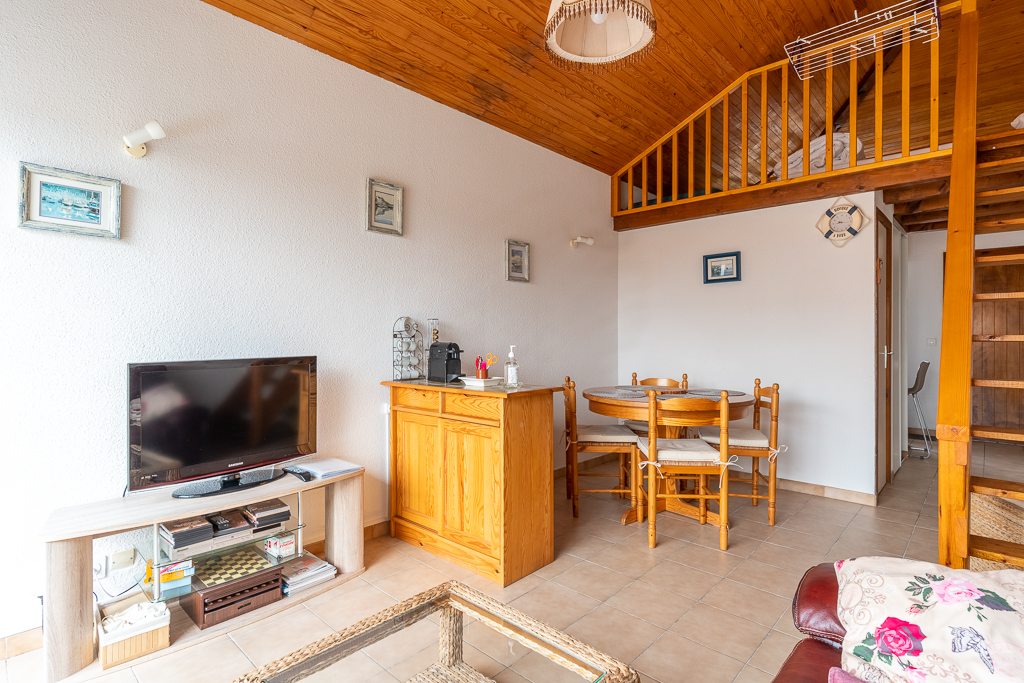 Classé 2 étoiles, cet appartement peut accueillir jusqu’à 4 personnes et se compose d’un spacieux salon/salle à manger équipé d’un canapé 3 places et d’une télévision à écran plat. La cuisine, entièrement équipée (plaque à induction, four/micro-ondes, réfrigérateur/congélateur, cafetière à filtre, cafetière Nespresso, grille-pain, lave-linge), vous permettra de préparer vos repas en toute simplicité. La chambre, avec placard et lit en 140, offre tout le confort nécessaire, et la mezzanine, avec son lit en 140, offre deux couchages supplémentaires pour un confort optimal durant votre séjour. La salle de bains et les WC complètent cet espace fonctionnel et agréable.