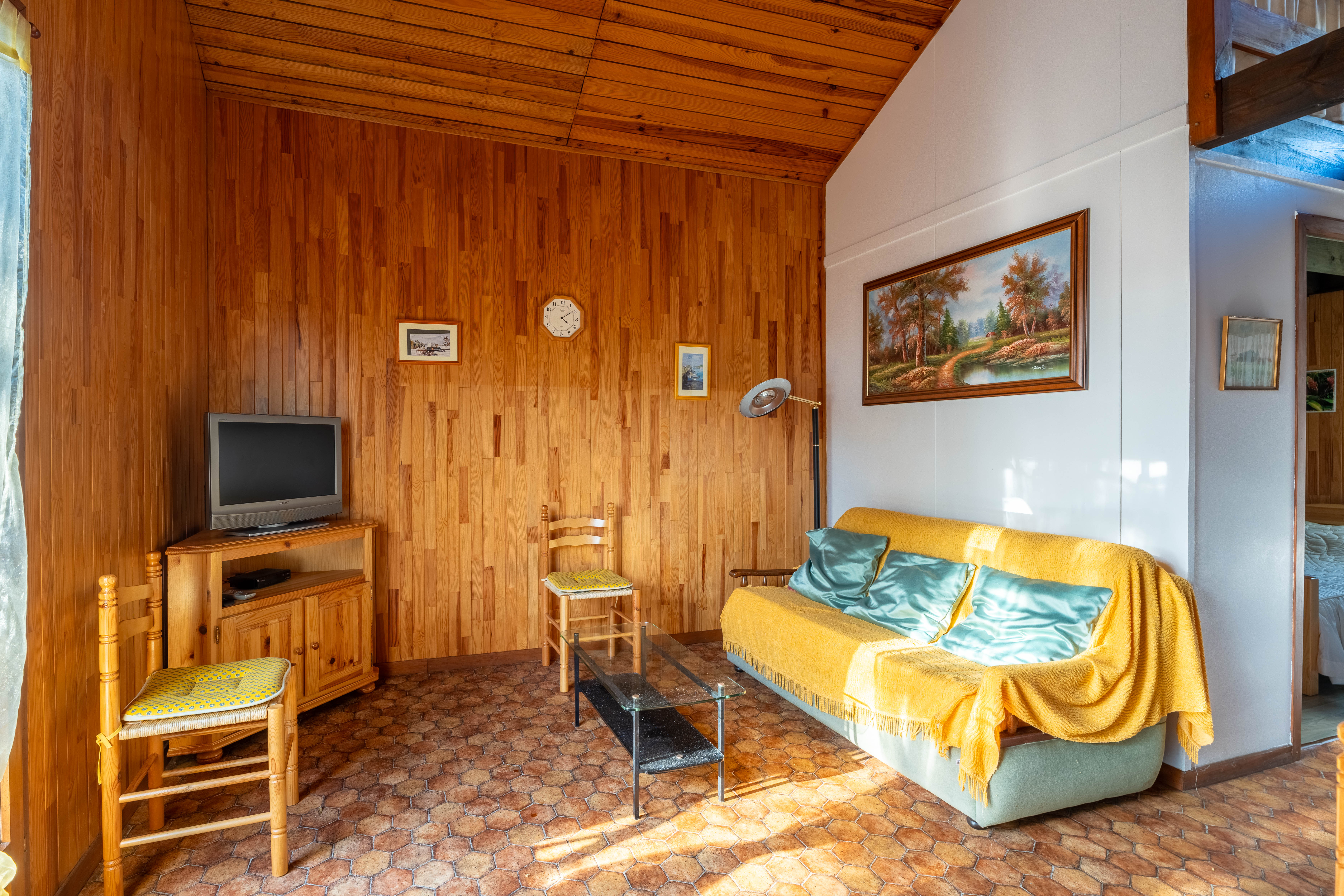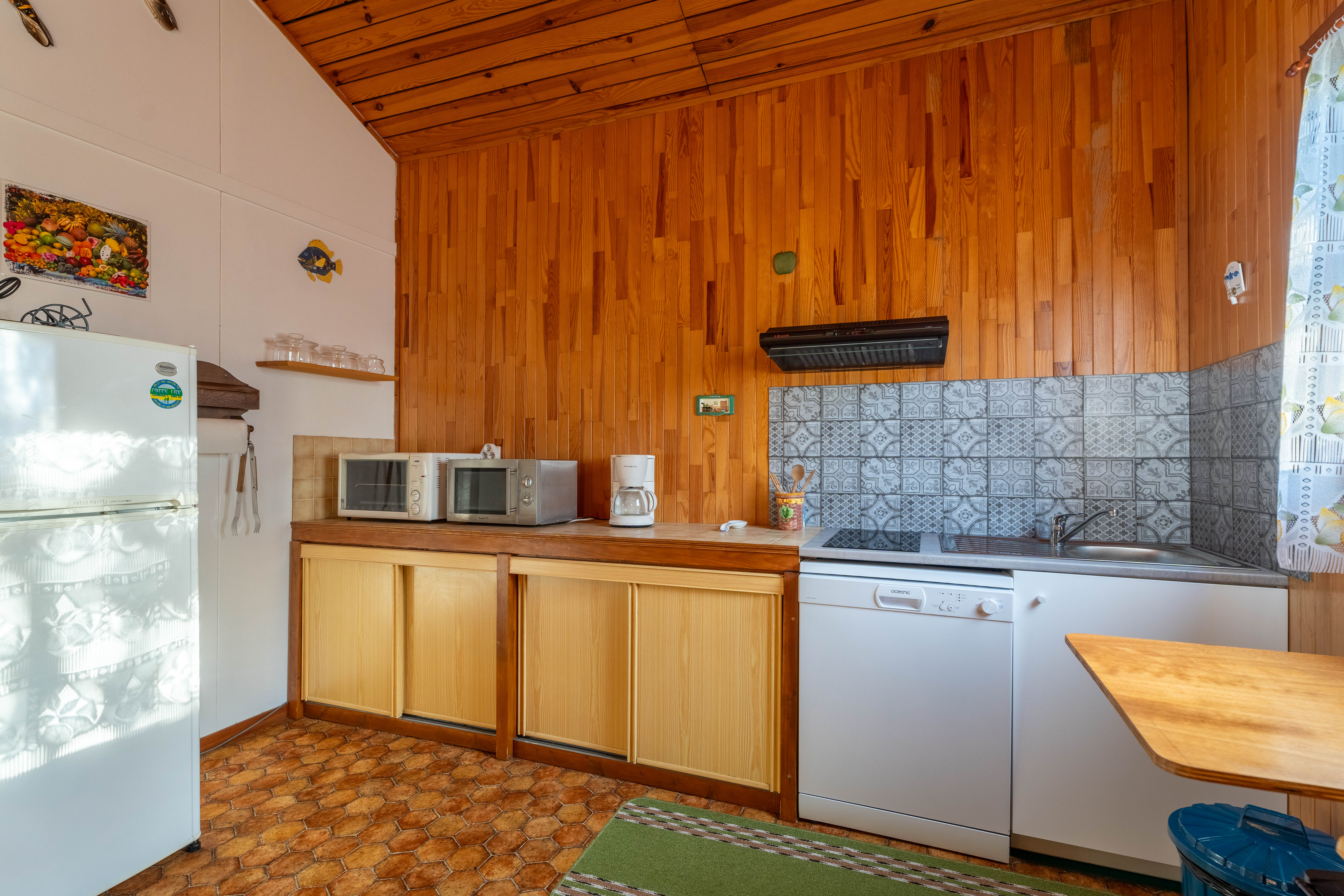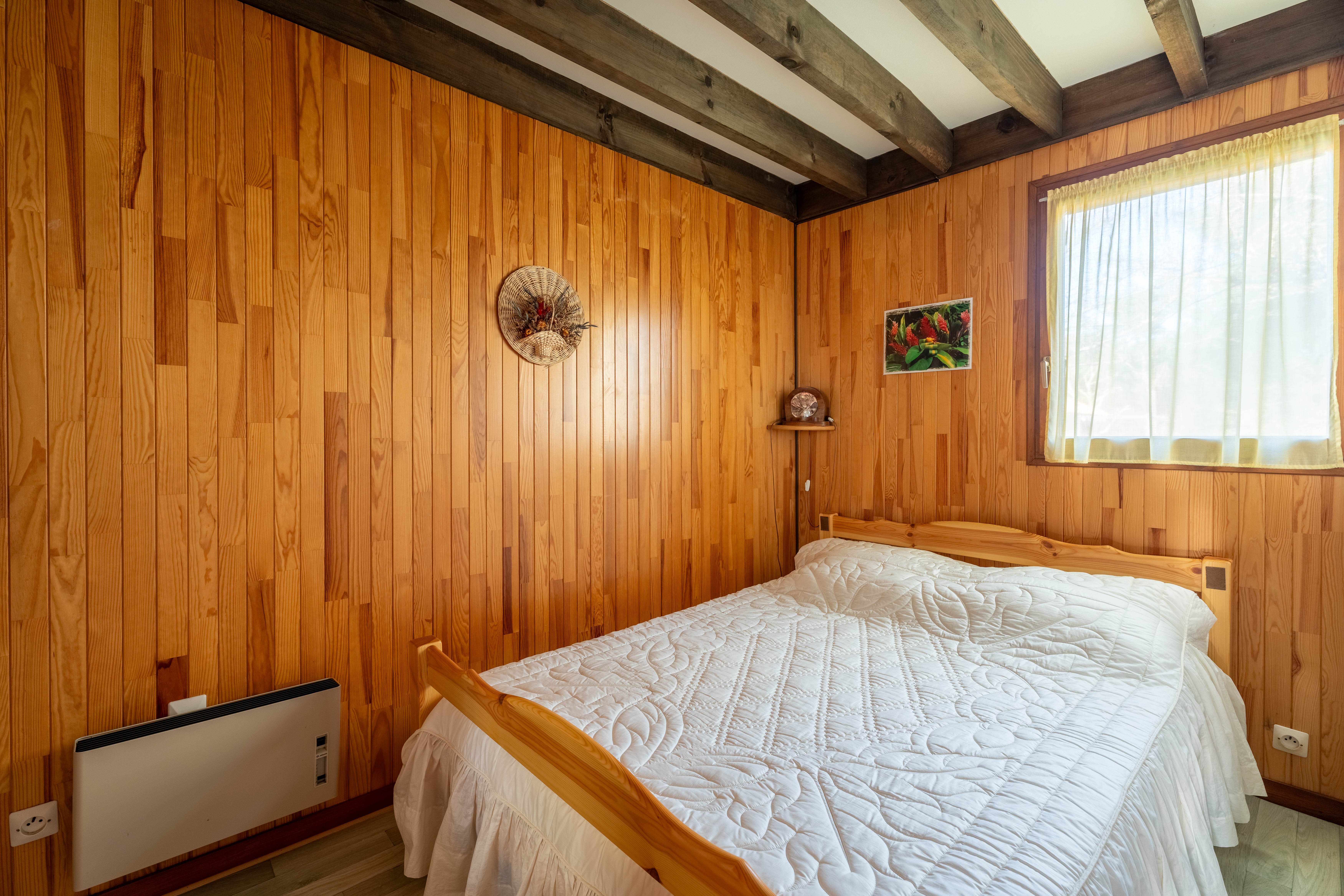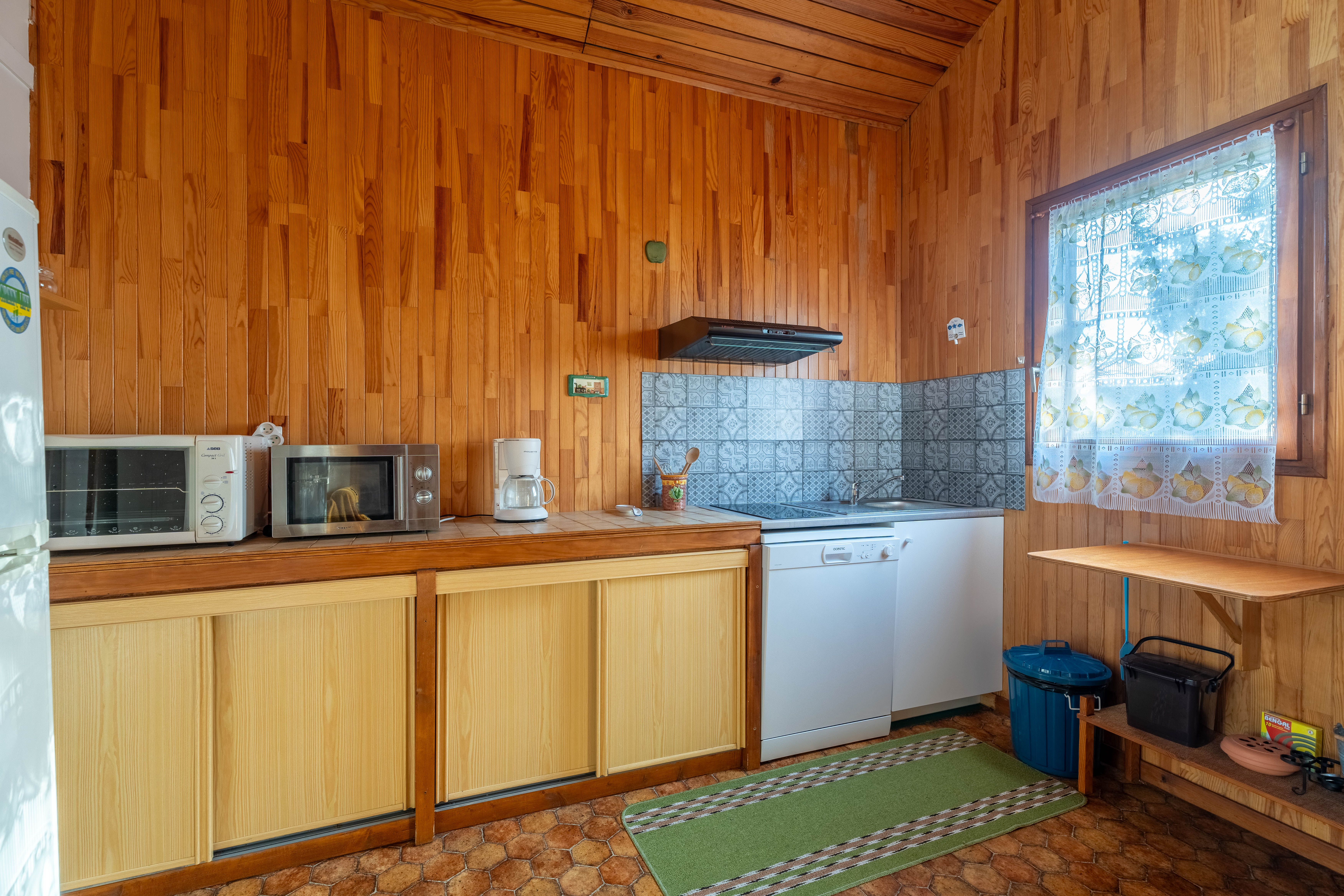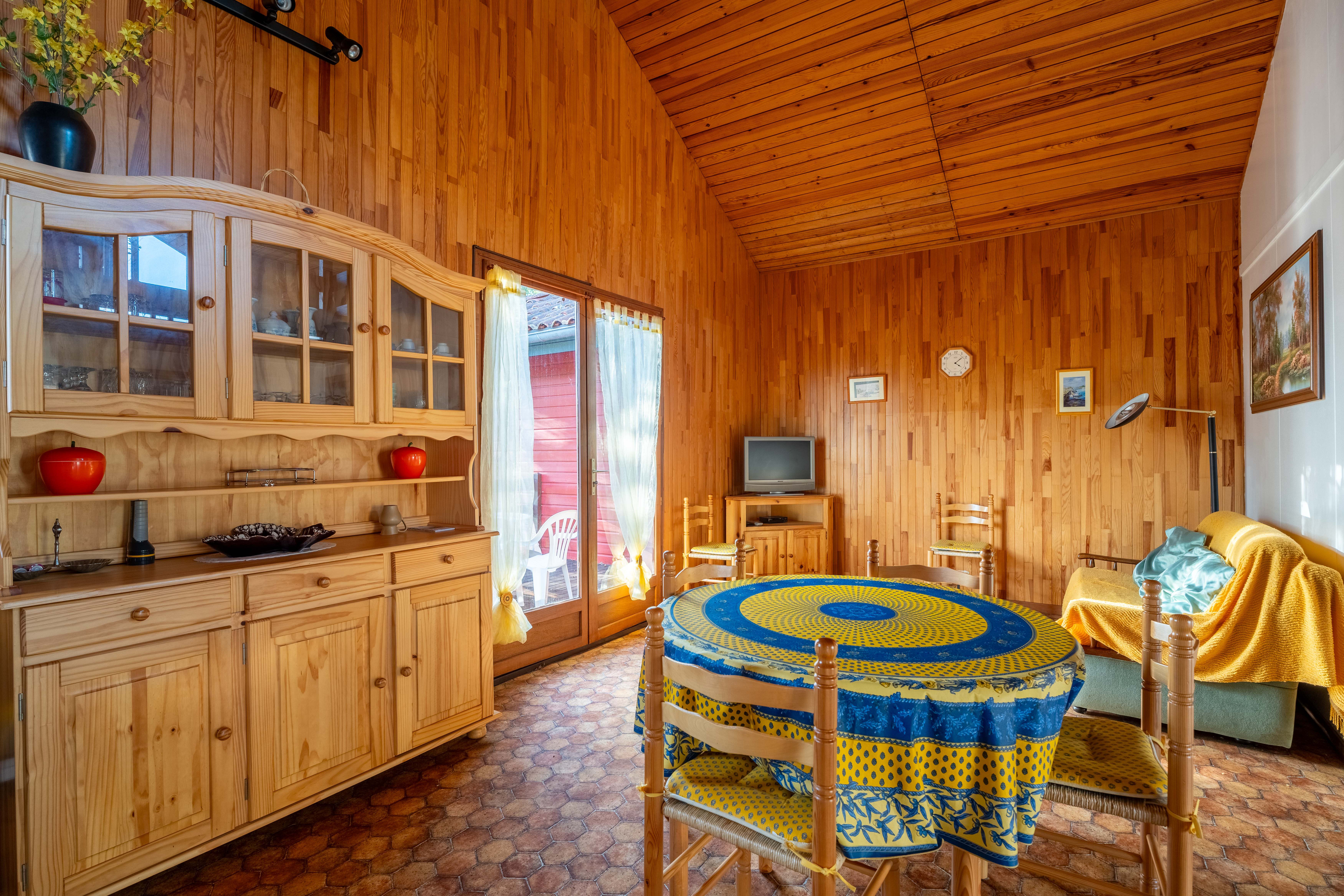 Le chalet dispose d'une entrée, un séjour avec coin TV ( pas de WIFI, réception 4G faible ), une cuisine ouverte aménagée et équipée ( grille-pain, réfrigérateur, cafetière…). Deux chambres avec lits doubles et rangements. Une salle d'eau avec WC. Côté extérieur, une terrasse avec table/chaises et barbecue électrique pour déguster vos repas et vos cocktails. Un jardin entouré de pins non clôturé, possibilité de garer votre véhicule devant la propriété. Des vacances ensoleillée et de détente n'attendent que vous !