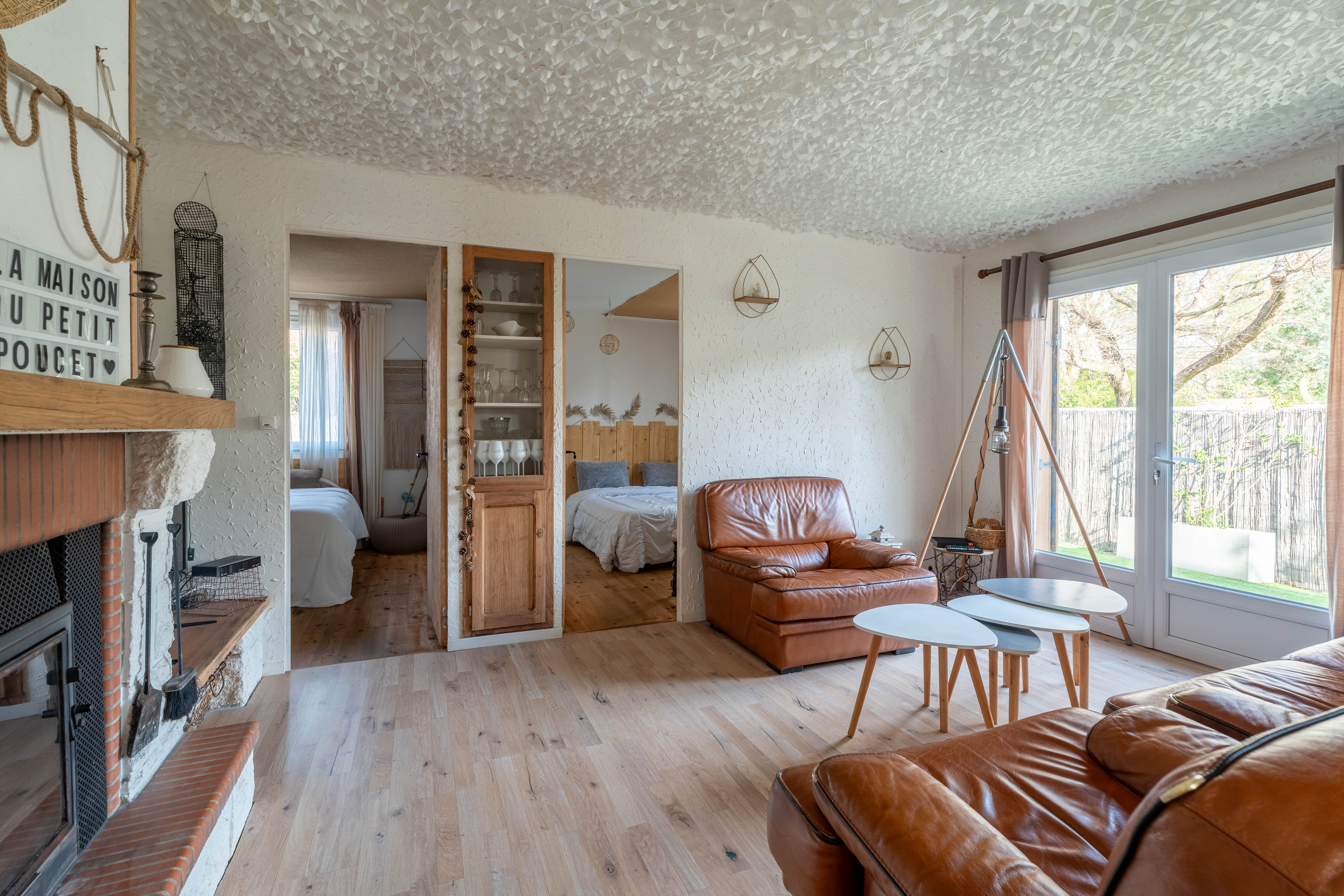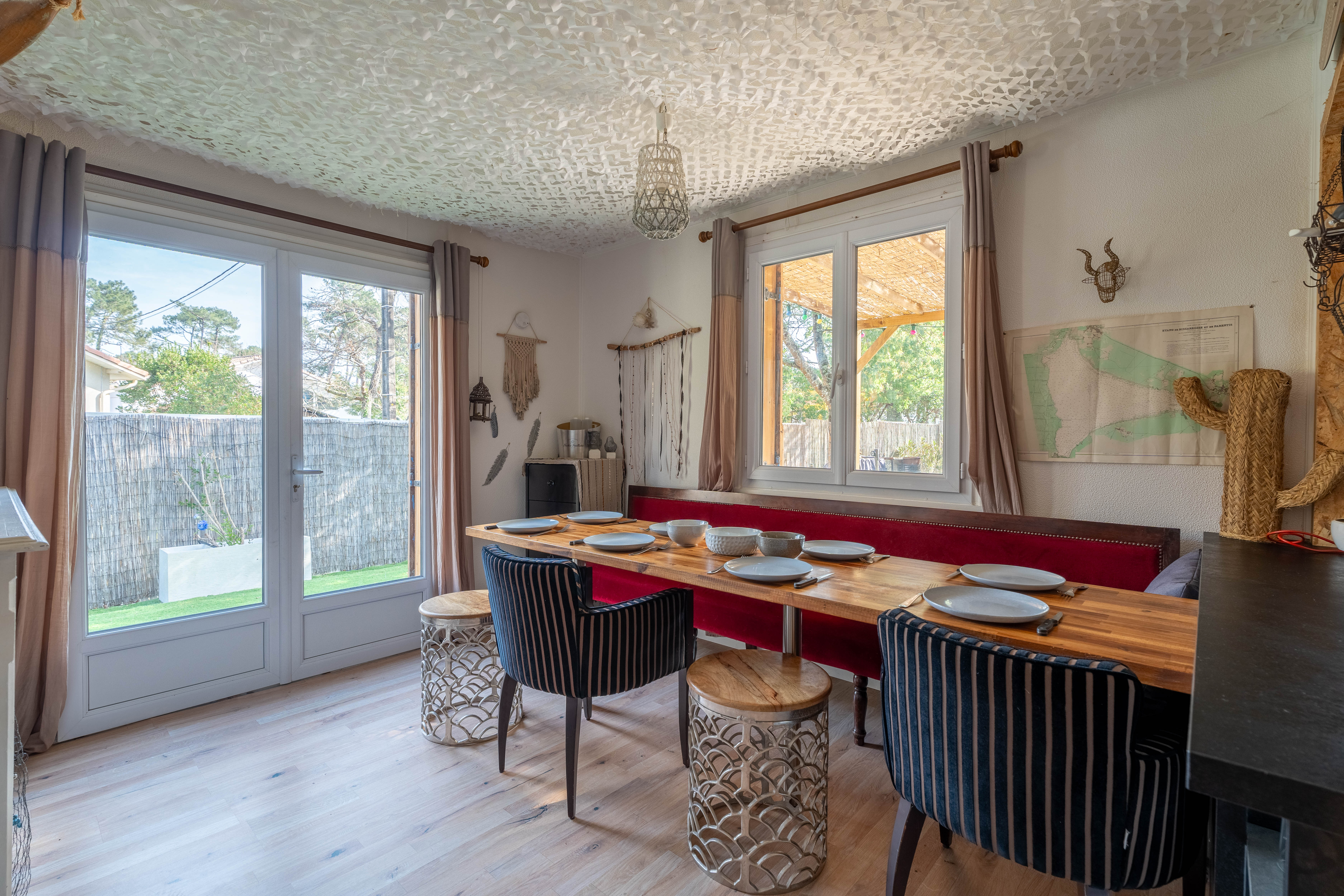 Dans un cadre privilégié de Biscarrosse, nous vous proposons cette belle maison de 90m² pouvant accueillir jusqu’à 8 personnes. L’emplacement est idéal pour un séjour d’une semaine ou plus en famille ou entre amis car vous pouvez vous rendre à pied ou à vélo au lac de Biscarrosse ( 450m ) pour faire du bateau ou du paddle et vous avez un accès quasi immédiat aux pistes cyclables landaises. Pour les plus sportifs, vous pouvez pédaler jusqu’à la plage pour prendre vos cours de surf ou marcher sur la plage pour le coucher de soleil. La maison se compose d’un séjour / salon avec TV avec WIFI, une cuisine semi-ouverte aménagée et équipée d'un microonde, four, cafetière … .Quatre belle chambres avec lits double et rangements dont une dispose de sa propre salle d'eau puis une salle d'eau supplémentaire séparé . Deux WC. Côté extérieur, une belle terrasse avec son mobilier pour profiter de vos repas et des beaux jours avec à disposition une plancha à gaz et un barbecue charbon. Une piscine avec ses bains de soleil. Plusieurs places de parking sont disponibles. Des vacances ensoleillées n’attendent que vous !