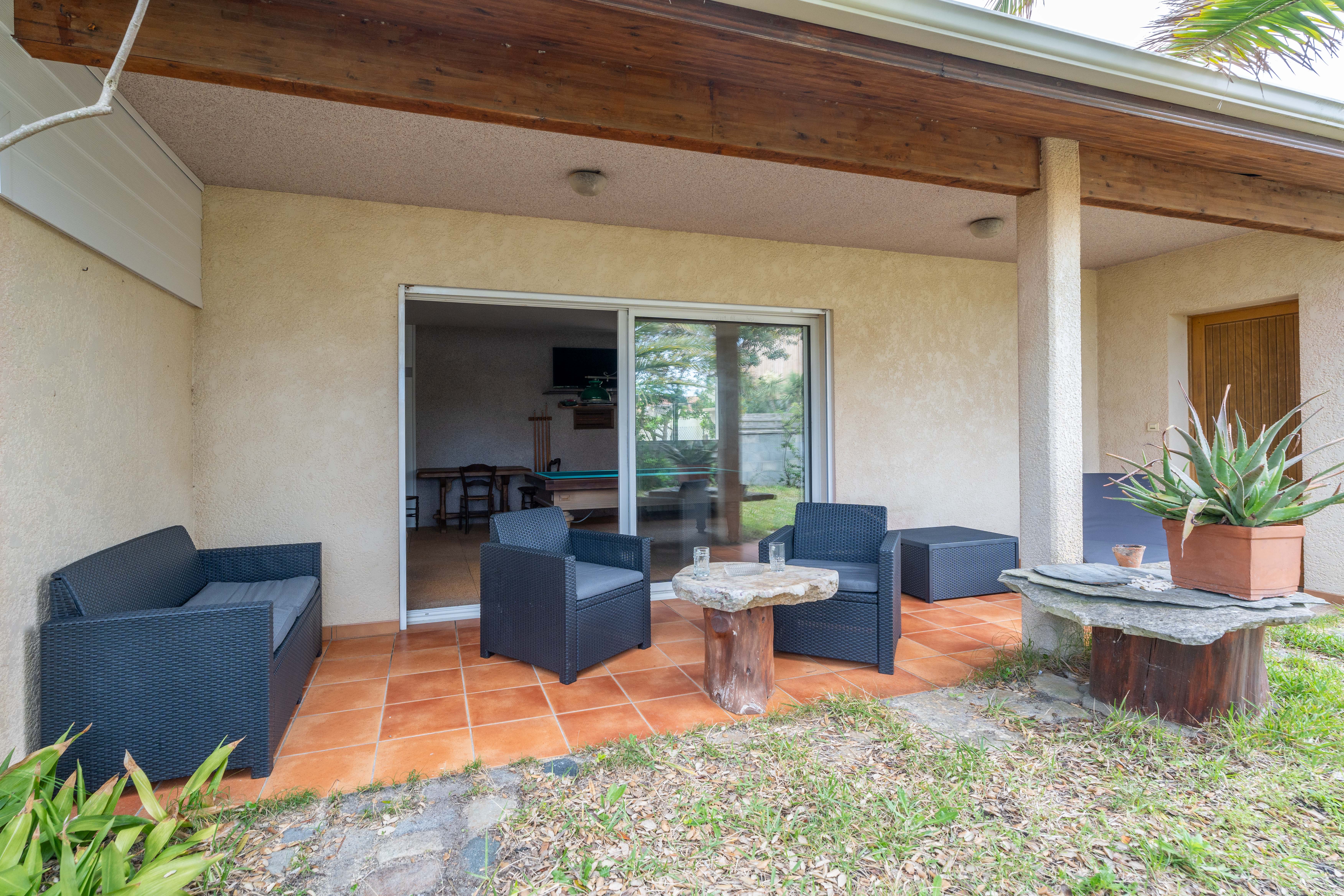 Trois chambres sont à disposition dont une suite parentale (Literie renouvelée en avril 2025). Une salle d'eau et un WC séparé pour plus de confort. Vous avez également un deuxième salon équipée d'une TV, d'un billard et d'une terrasse couverte pour profitez de vos soirées en famille. Côté extérieur, un jardin entour la maison avec du mobiliers de jardin pour profitez de vos repas, un espace a également était aménagé pour ranger vos planches de surf et étendre vos combis. Place de parking disponible devant ou dans l'enceinte de la propriété.