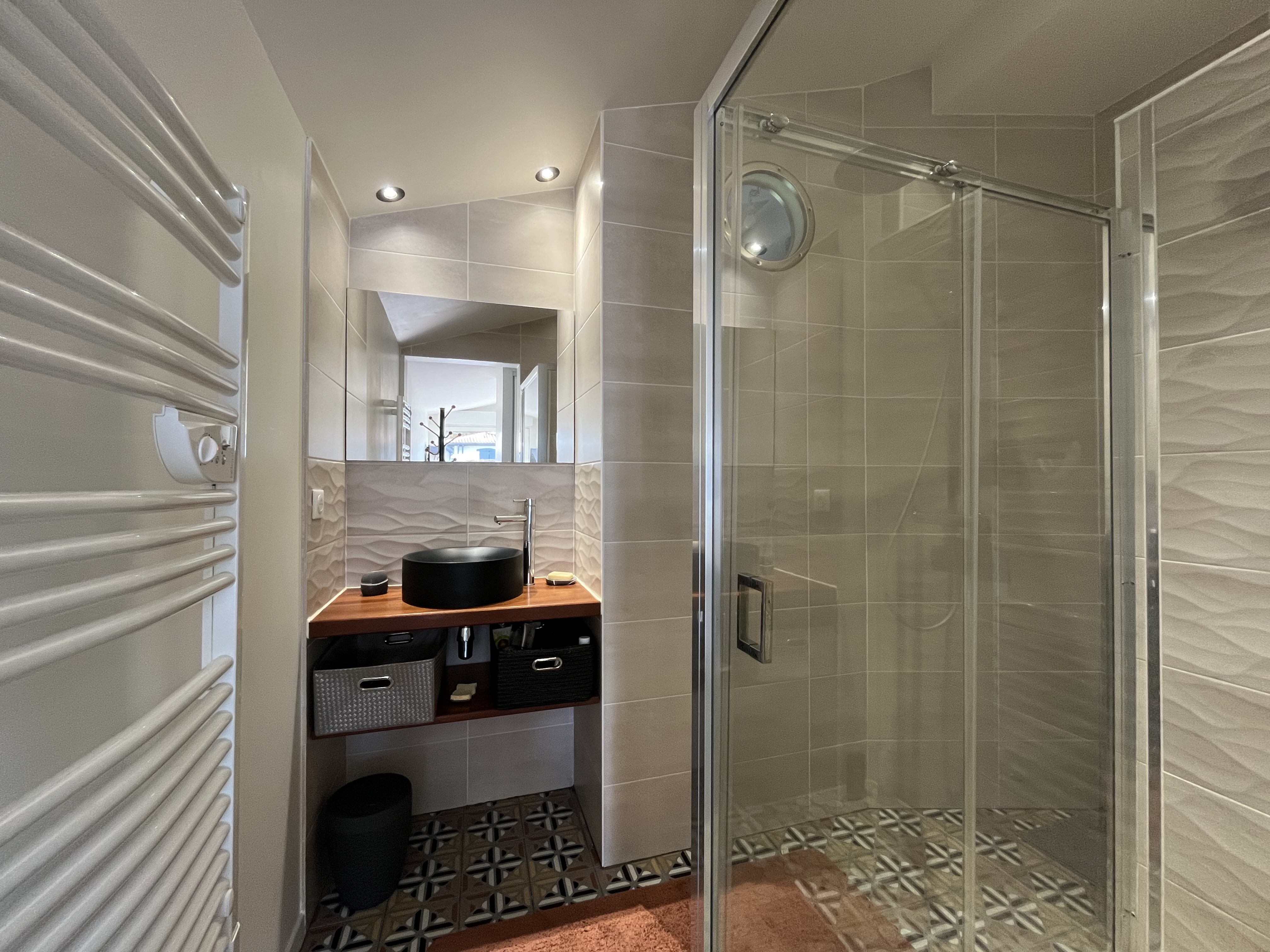 Une première grande chambre avec une literie en 160 vous offrant deux couchages Sa salle d'eau avec douche à l'italienne et son WC. Une seconde chambre avec un lit en 140 pour deux personnes, avec un placard. Une troisième et dernière chambre avec un lit en 140, et son placard également. Une deuxième salle d'eau avec un WC séparé.