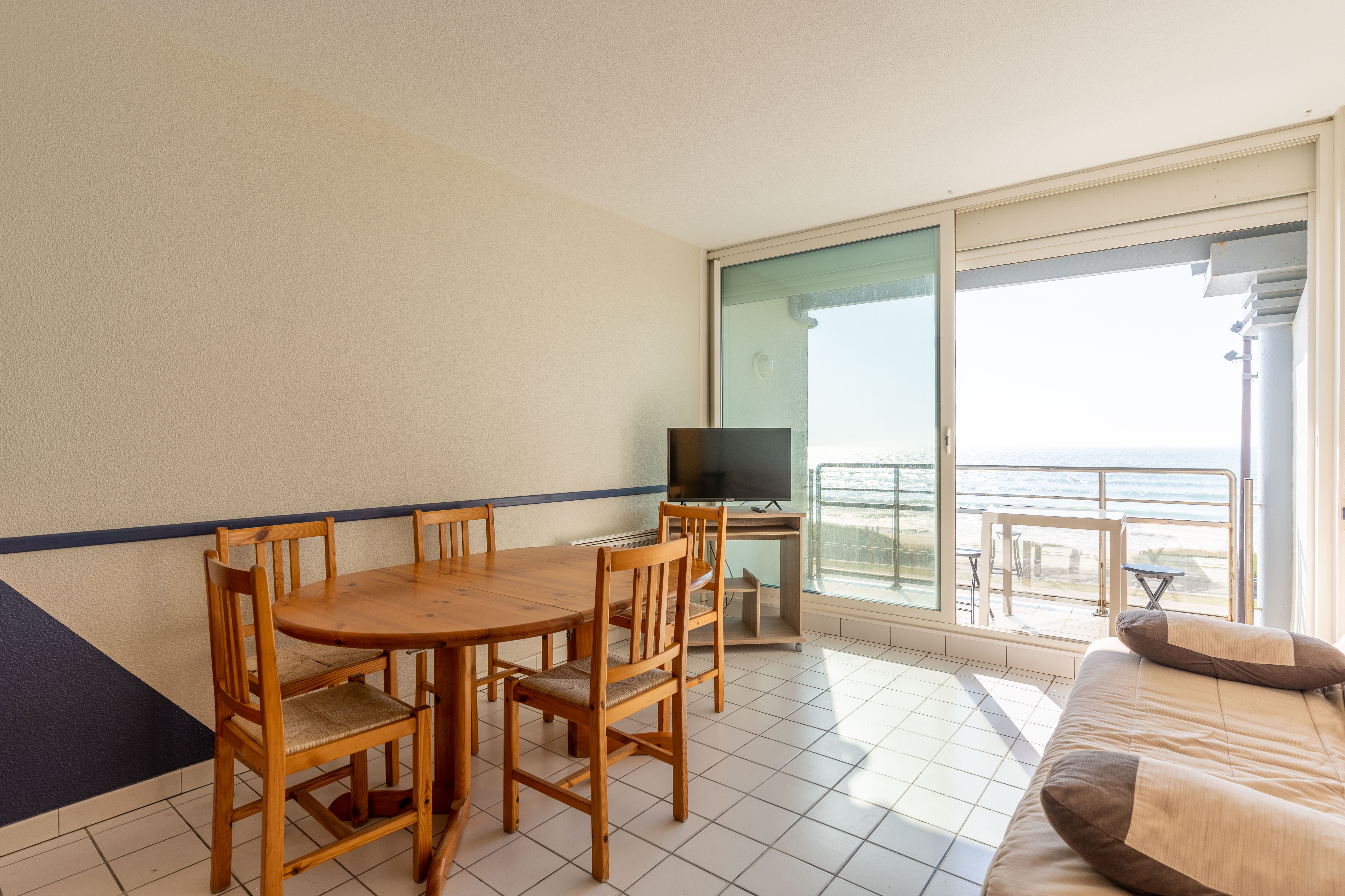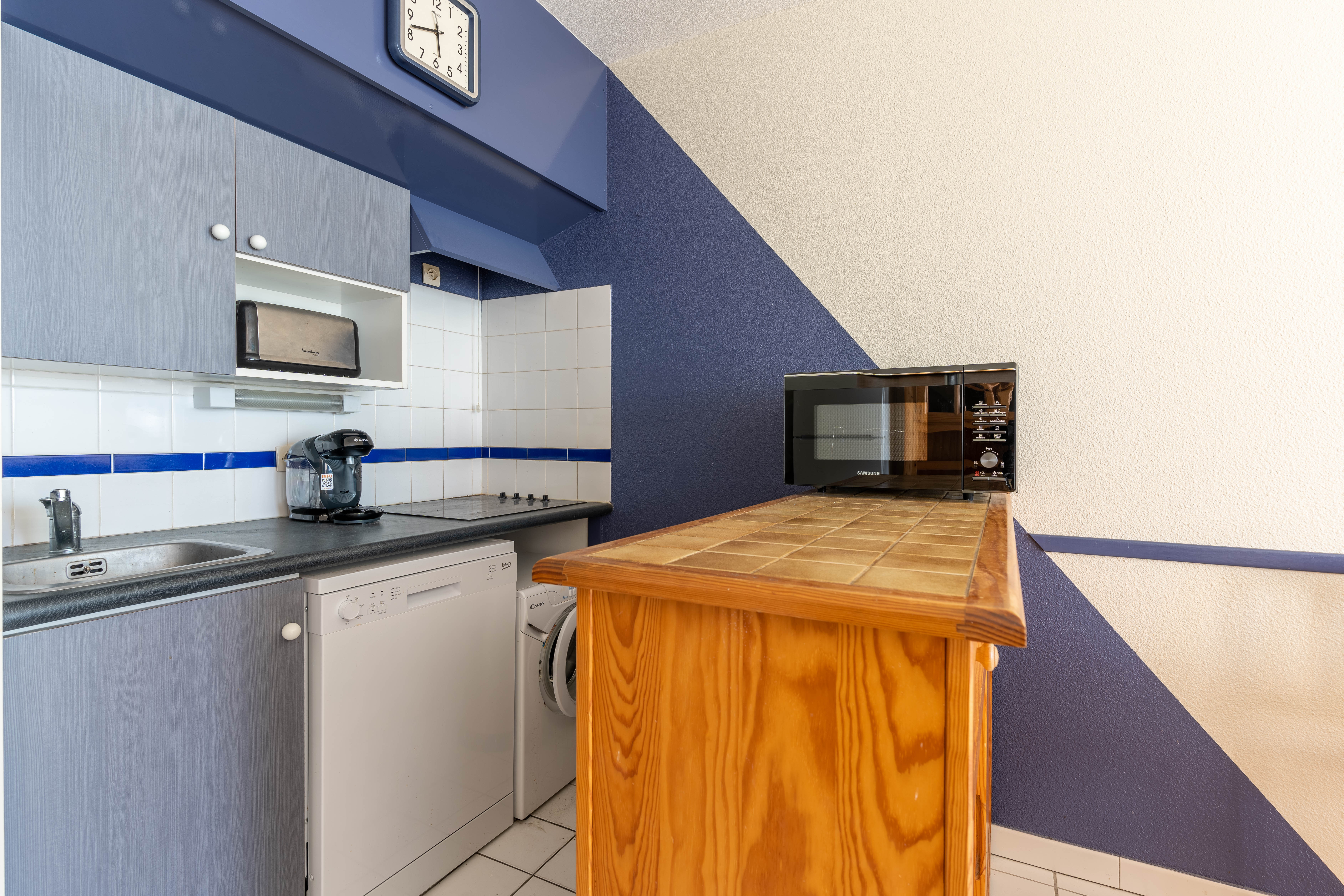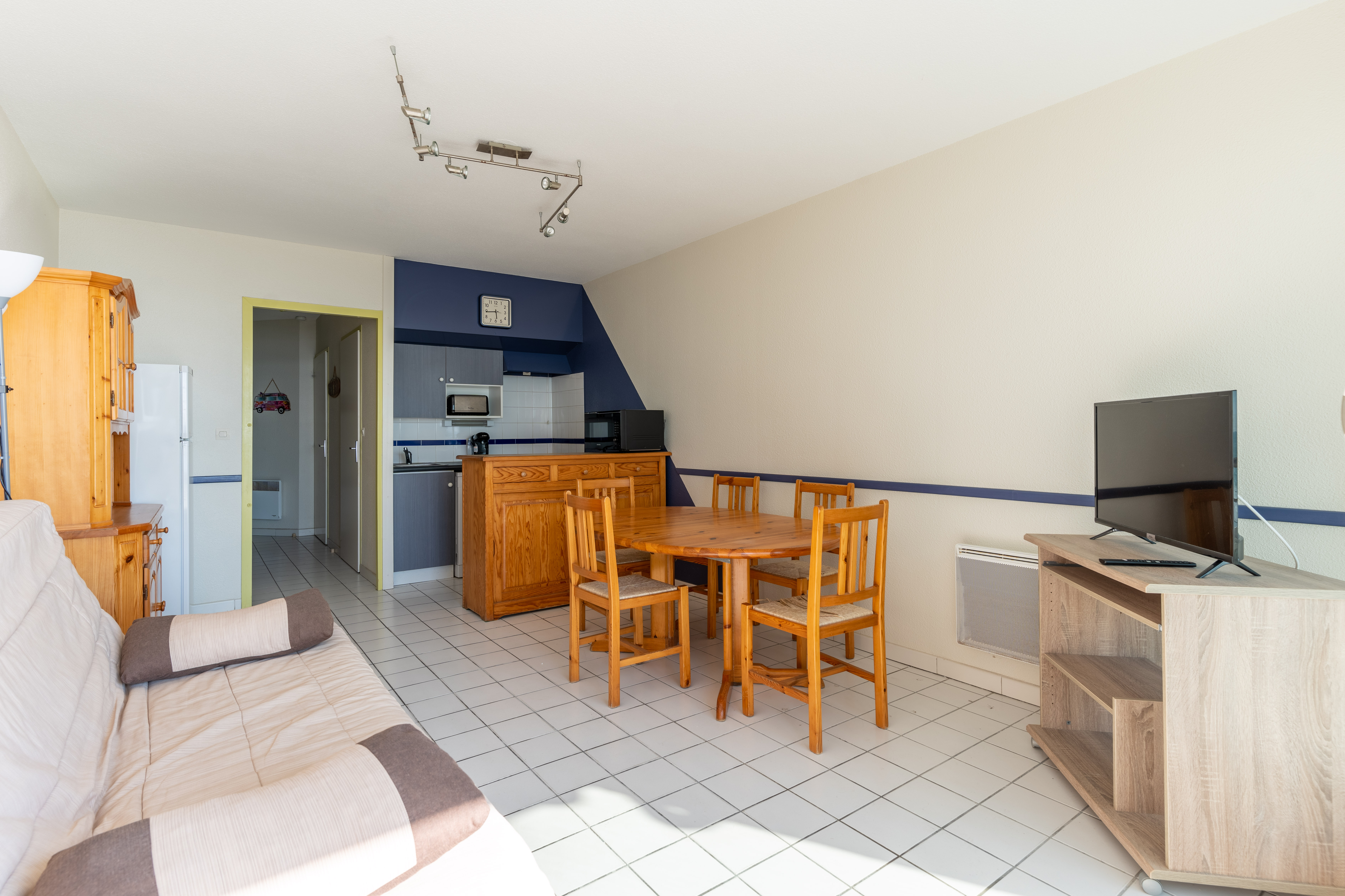 La pièce principale, spacieuse et lumineuse, donne sur un balcon où vous pourrez savourer vos repas tout en admirant les magnifiques couchers de soleil. Le coin cuisine est entièrement équipé (réfrigérateur/congélateur, plaques de cuisson, micro-ondes, lave-vaisselle, cafetière, bouilloire, grille-pain, lave-linge), et le séjour dispose d’un canapé convertible (clic-clac) et d’une TV écran plat. Bien que l’appartement ne dispose pas de WIFI, vous pouvez louer un boîtier à l’agence.