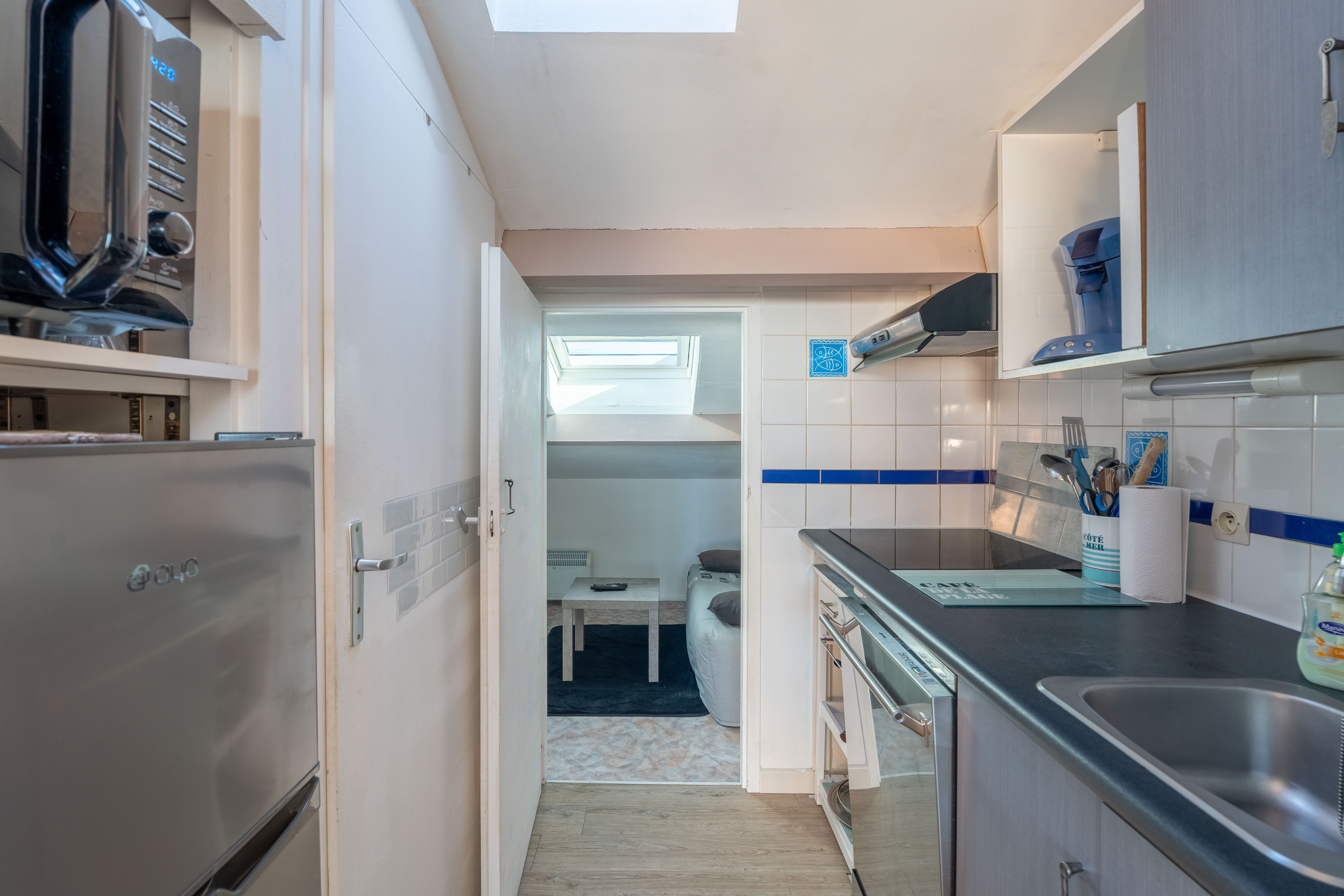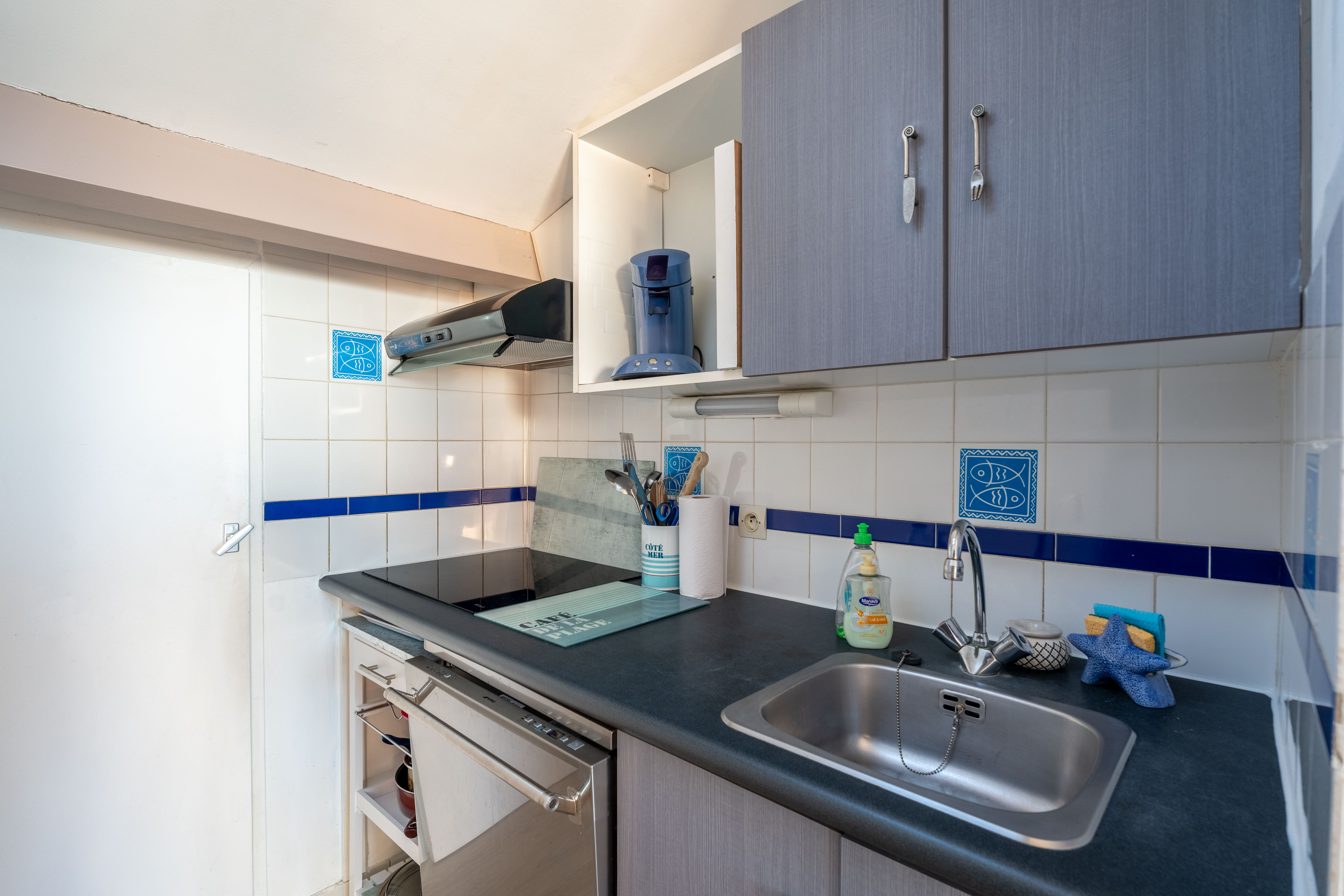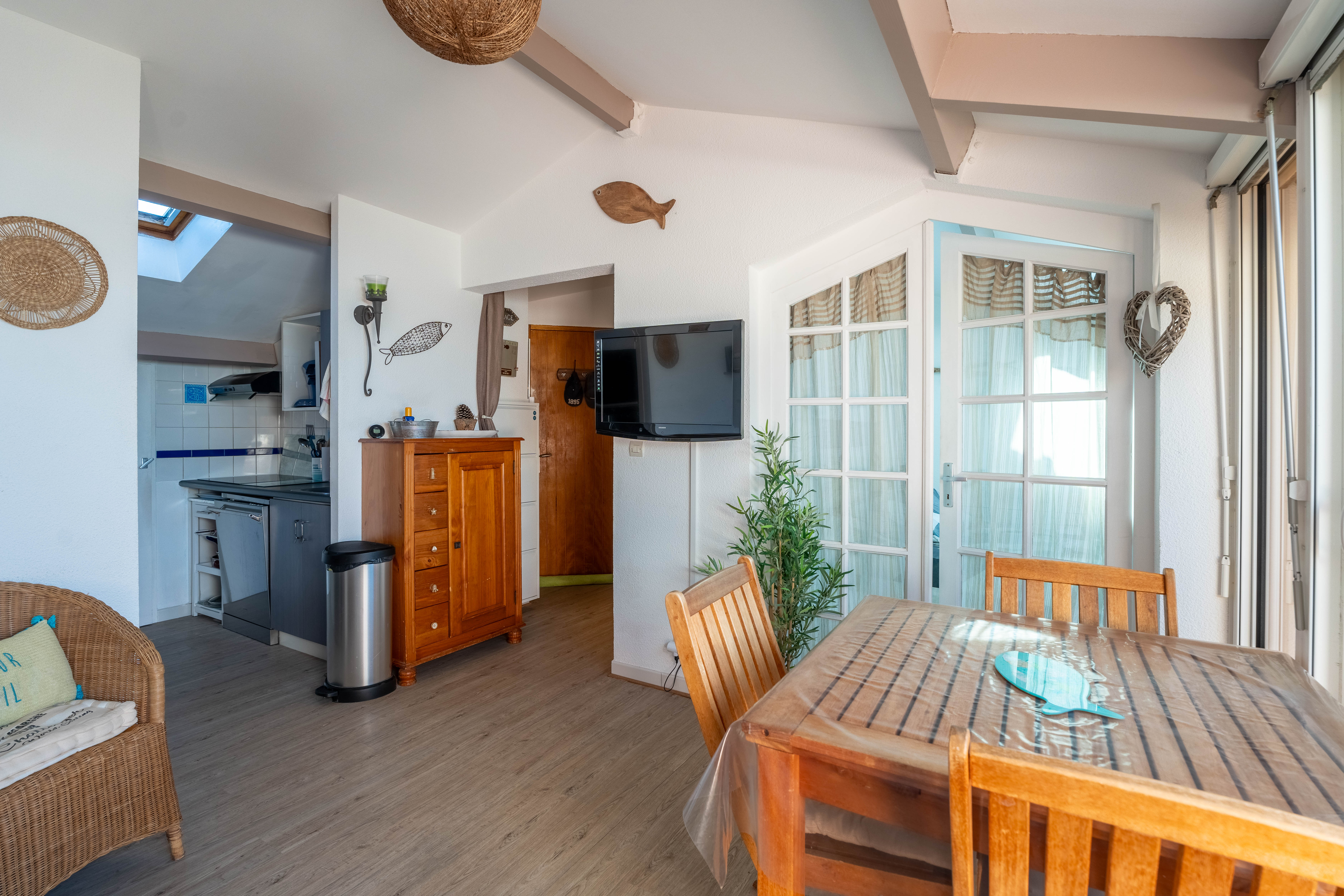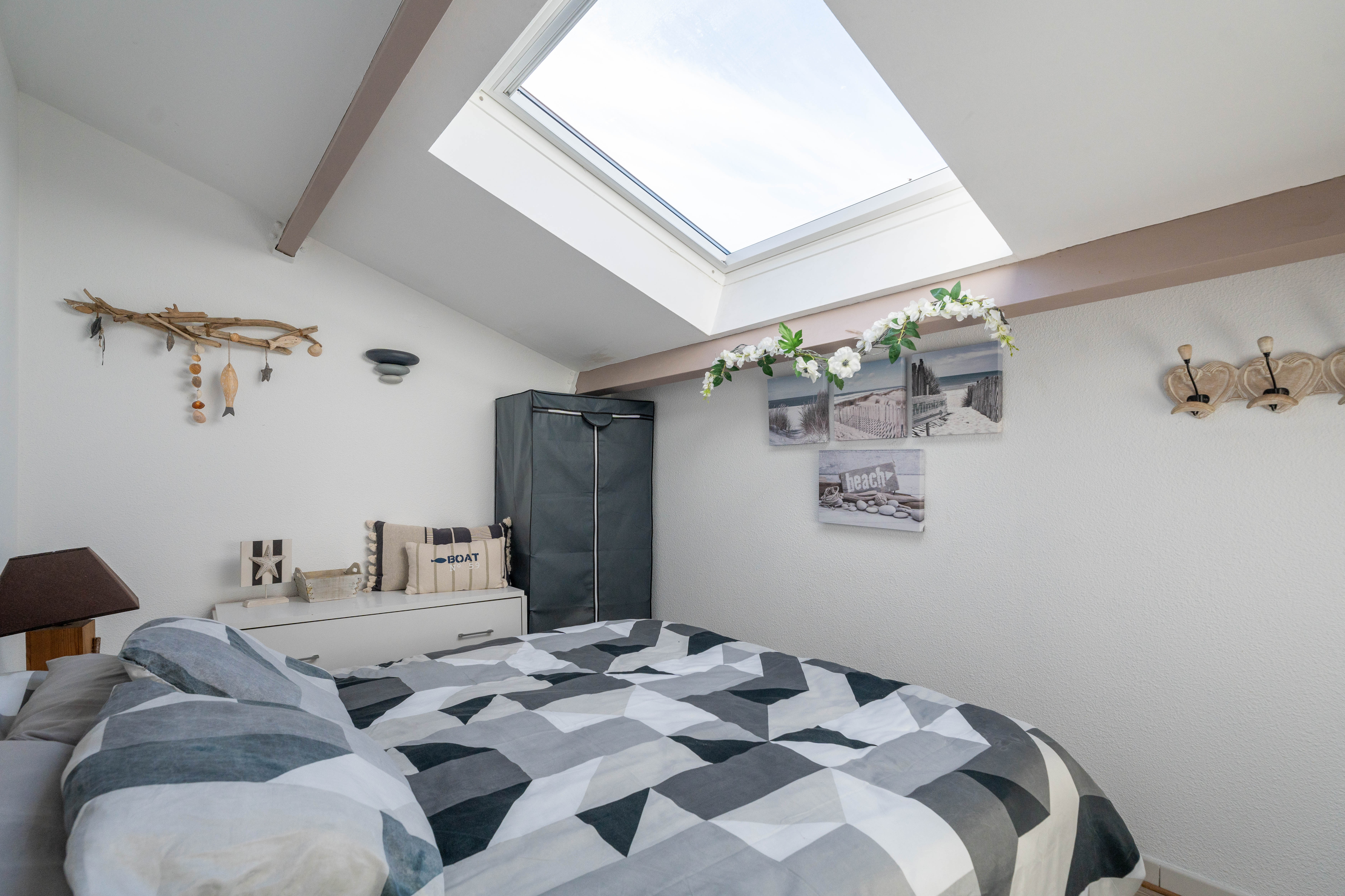 L’intérieur de l’appartement est confortable et bien agencé. Il se compose d’une entrée avec un lit superposé de 90 cm, d’une chambre avec un lit double de 160 cm, et d’un coin nuit équipé d’un canapé convertible (clic-clac).