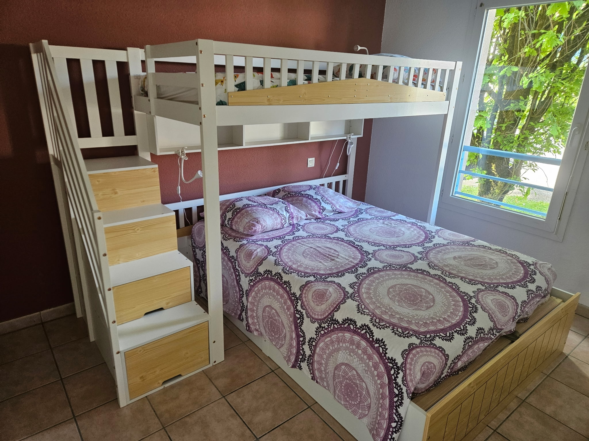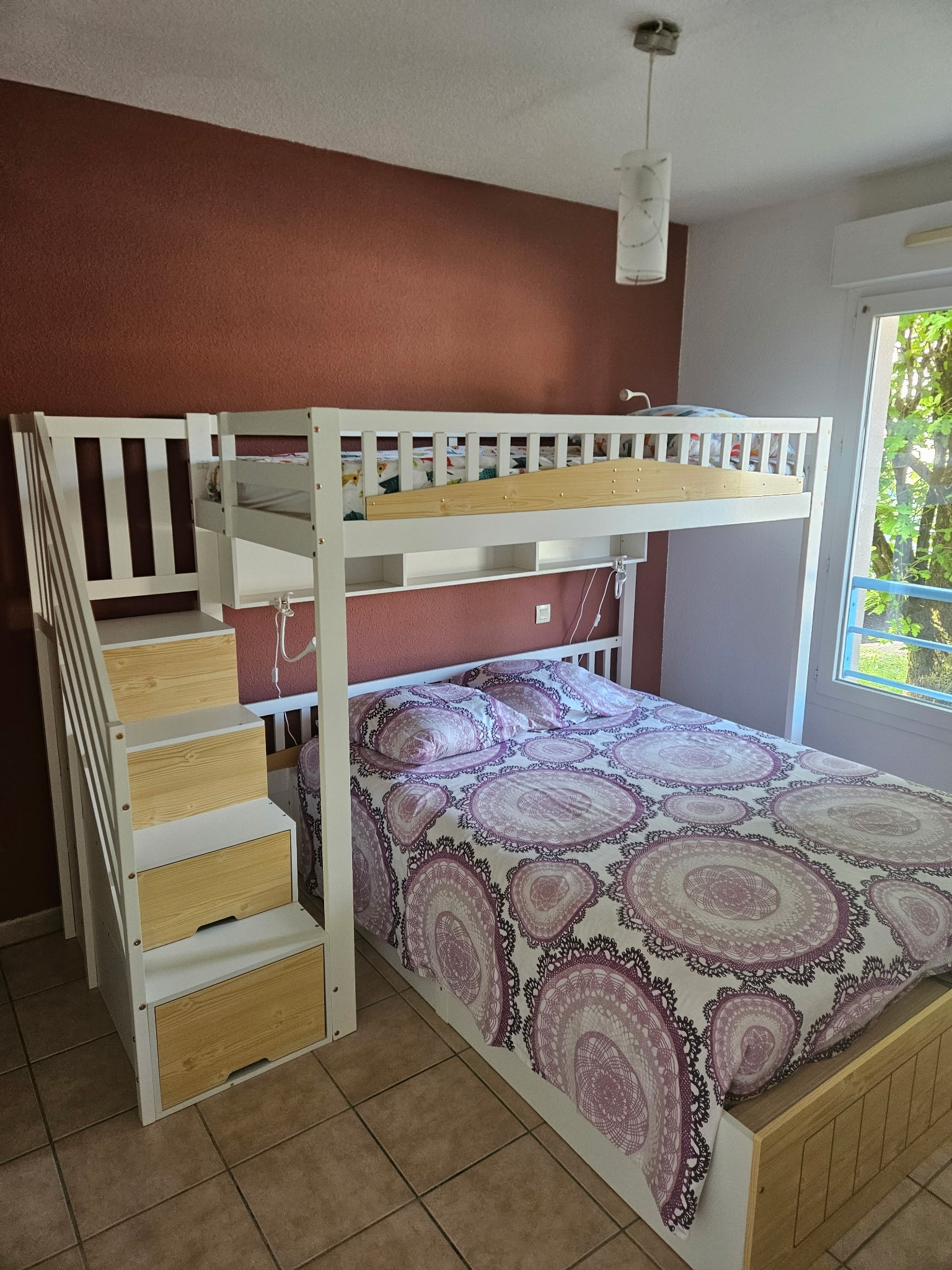 Dans le centre-ville de Biscarrosse bourg, nous vous proposons un jolie appartement T2, au rez-de-chaussée d'une résidence sécurisée avec piscine non chauffée, ouverte du 15/06/2026 au 15/09/2026 ( selon météo ) de 10H00 à 20H00 pour la haute saison . Vous êtes également à 3 km des plages du lac sud de Biscarrosse et 10km de l'océan. Idéal pour un séjour d’une semaine ou plus en famille ou entre amis pour prendre des cours de surf, vous relaxer sur la plage ou encore faire du paddle sur le lac. Composé d'une entrée avec placards, séjour avec canapé-lit 2 personnes et coin télévision (Pas de Wifi, possibilité de louer un boîtier). Une cuisine ouverte entièrement équipée (plaques, hotte, frigo/congélateur, micro-ondes, lave-linge, lave-vaisselle) et son coin repas pouvant accueillir 5 personnes. Une chambre avec un lit superposé en 140 et 90 avec placards intégrés. Une salle de bains et WC séparé pour plus de confort. Côté extérieur, une terrasse avec table et chaises pour déguster vos repas et profiter des beaux jours. Un stationnement privatif est également associé à l’hébergement. Vous vous garer en arrivant et vous pouvez si vous le souhaitez partir à vélo pour faire le marché, boire un café en terrasse, découvrir nos pistes cyclables ou encore pédaler jusqu’à l’océan pour le coucher de soleil. Des vacances ensoleillé n'attendent que vous !