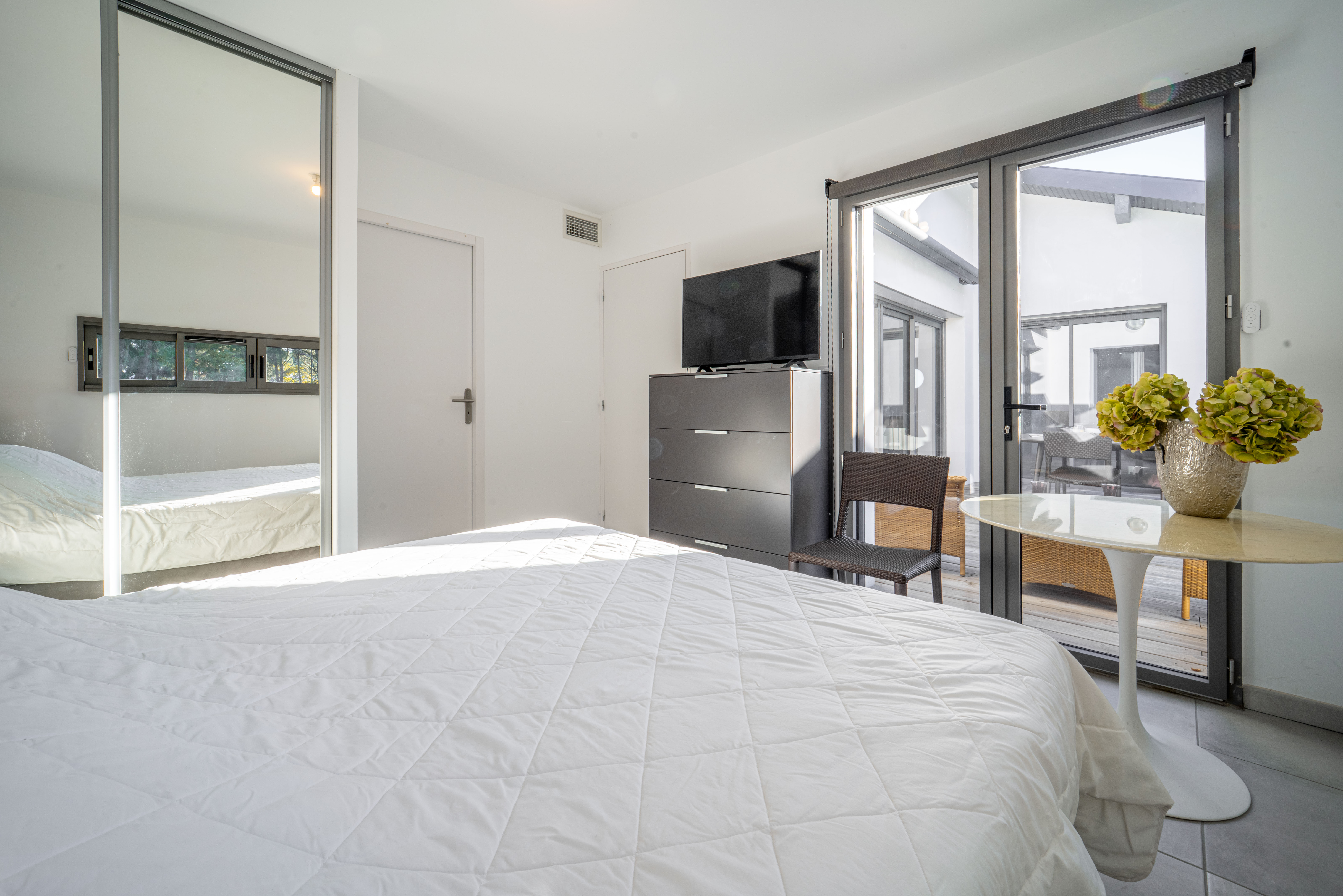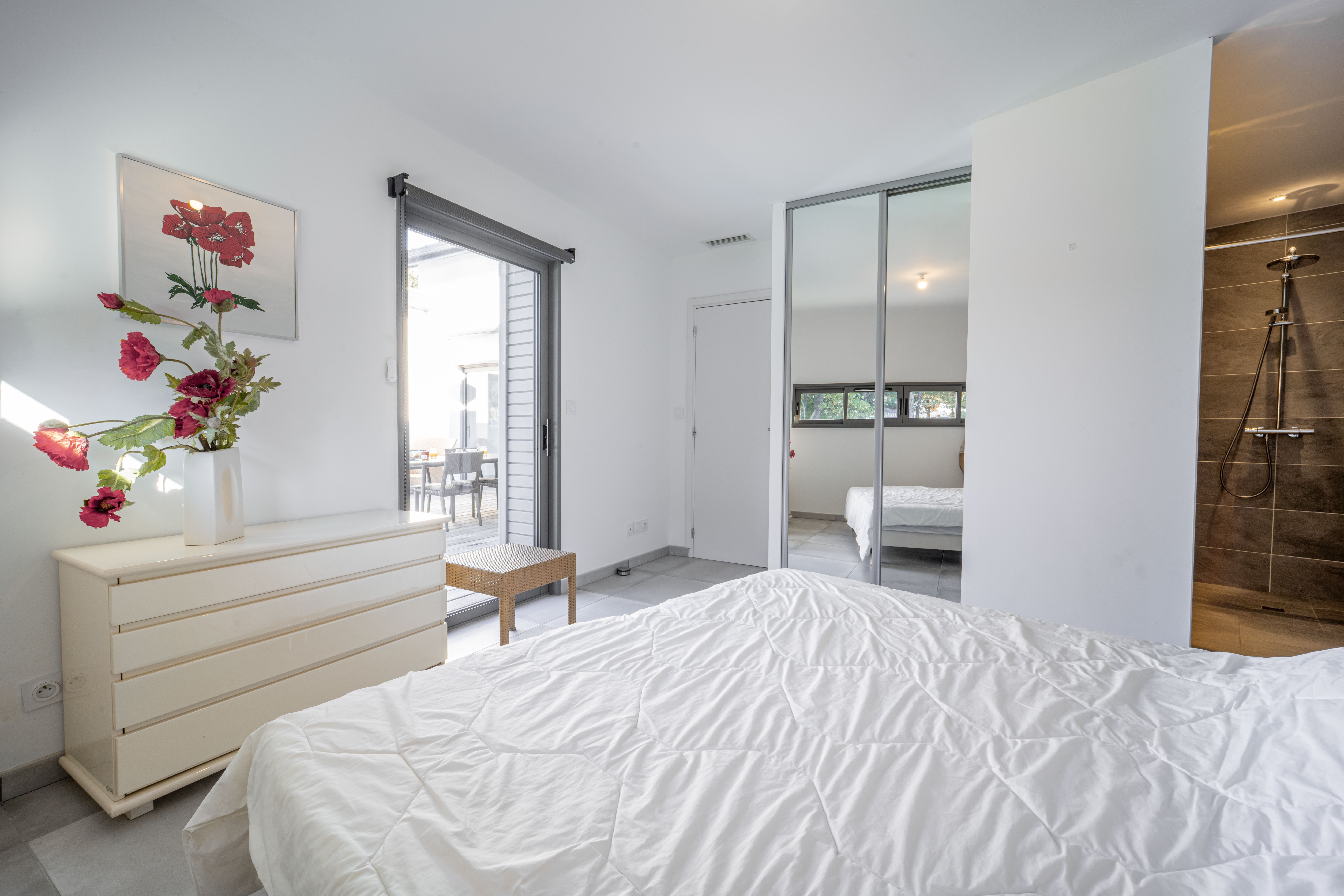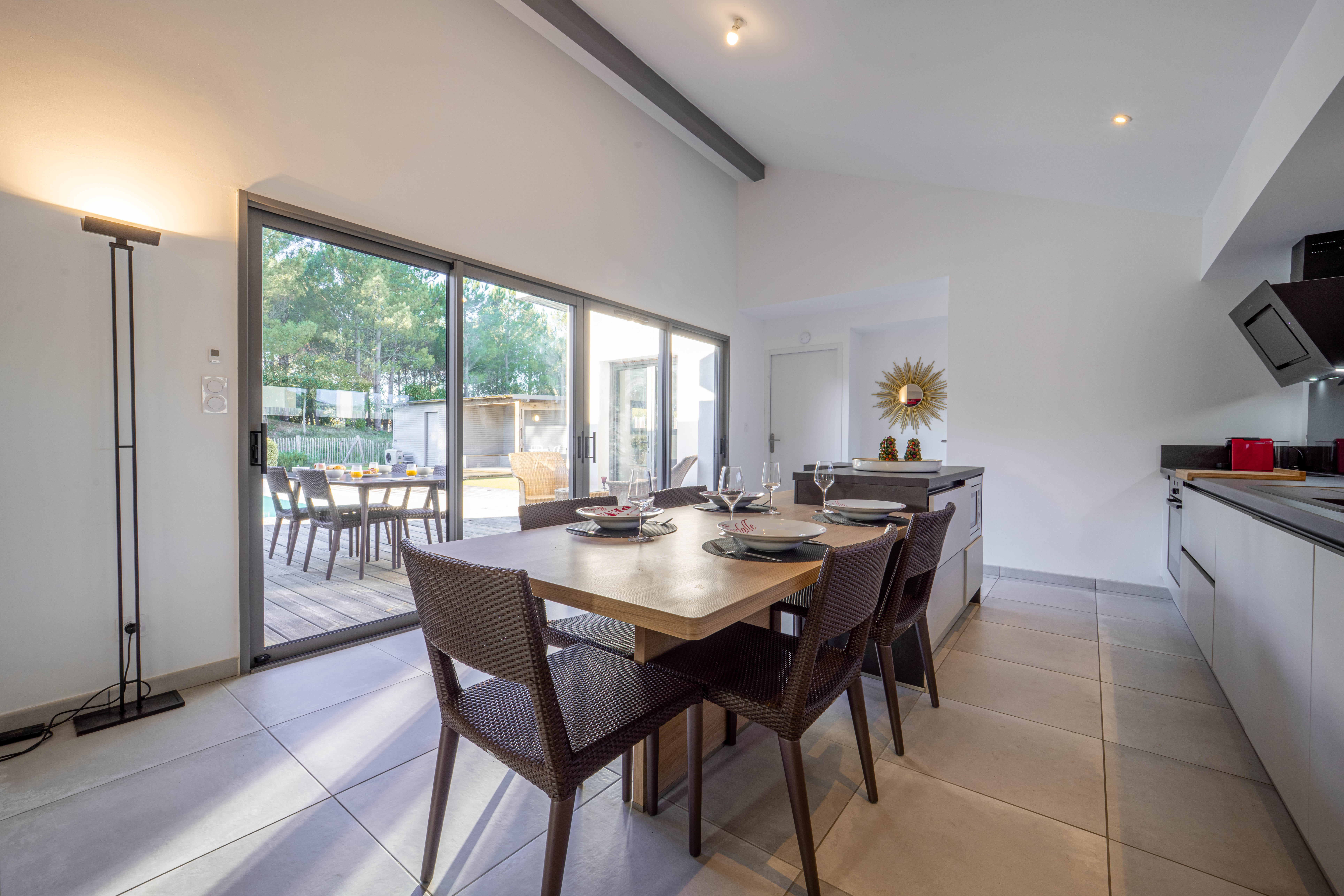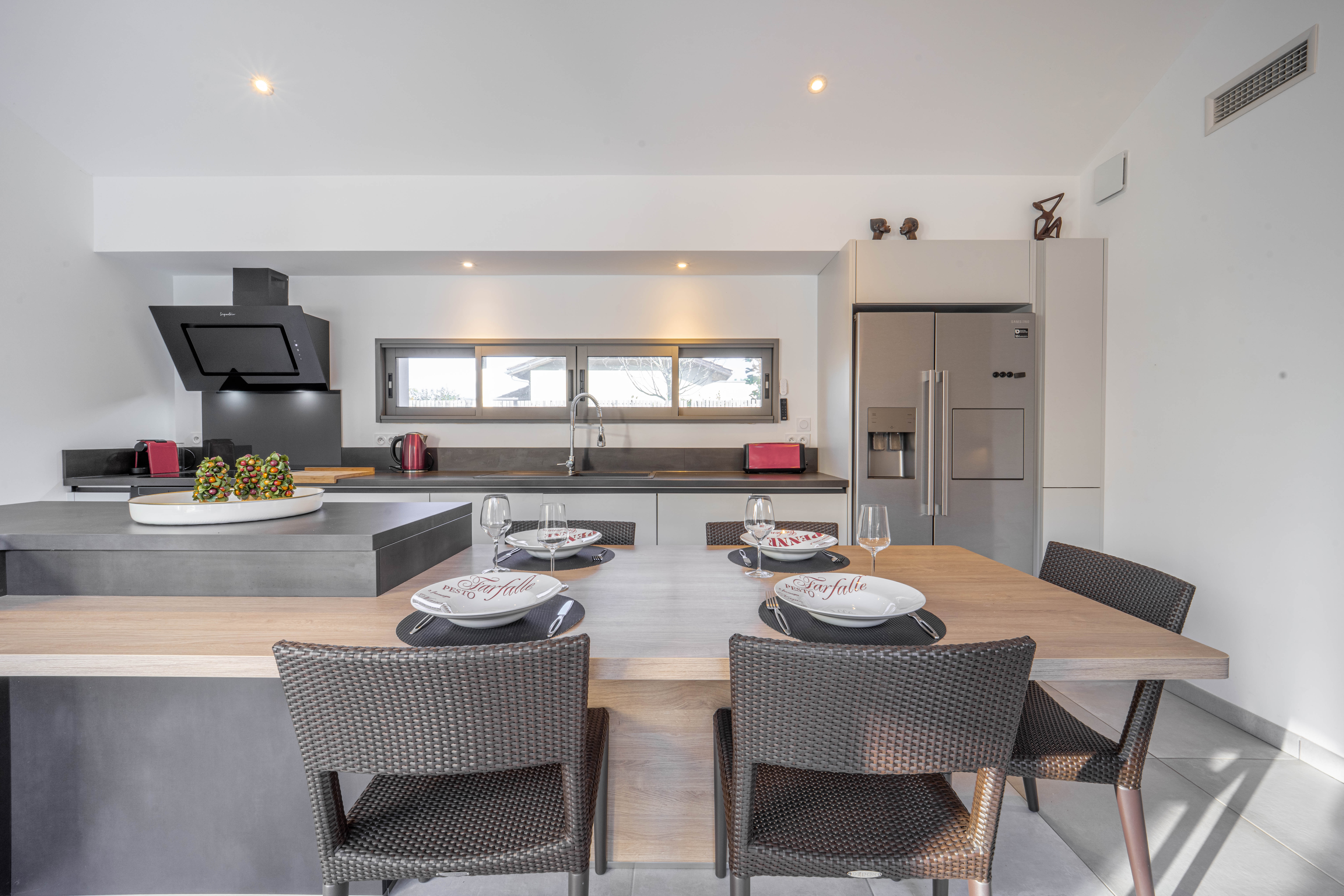 Dès l’entrée, vous serez séduit par l’atmosphère apaisante des lieux et son niveau de confort. La pièce de vie lumineuse s’ouvre sur une cuisine moderne et entièrement équipée (réfrigérateur américain, lave-vaisselle, four, micro-ondes, plaque induction, cafetière à capsules, bouilloire, grille-pain). Son îlot central permet de prendre les repas en admirant la piscine et le jardin. Le salon, cosy et contemporain, dispose d’un canapé confortable et d’une télévision à écran plat.