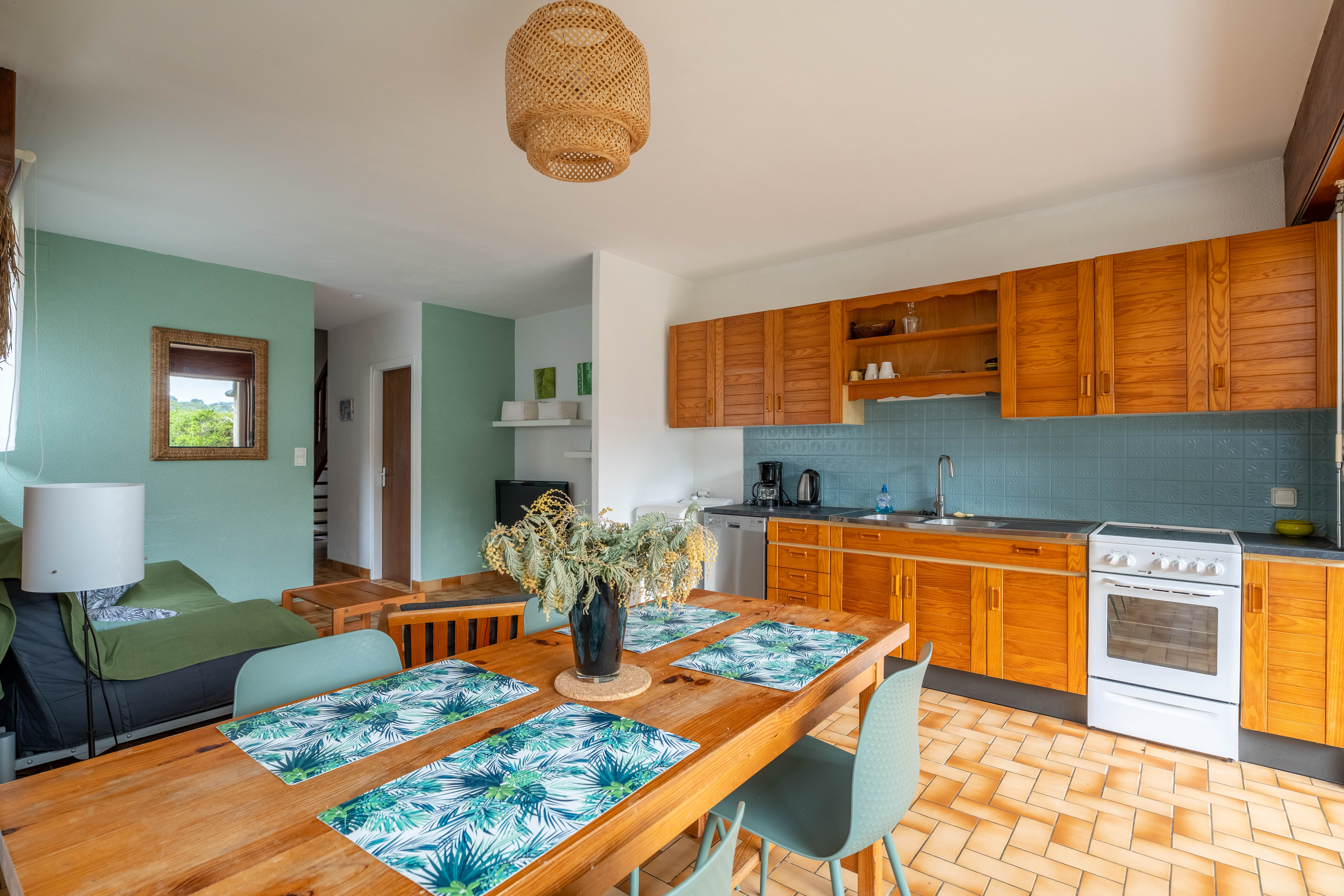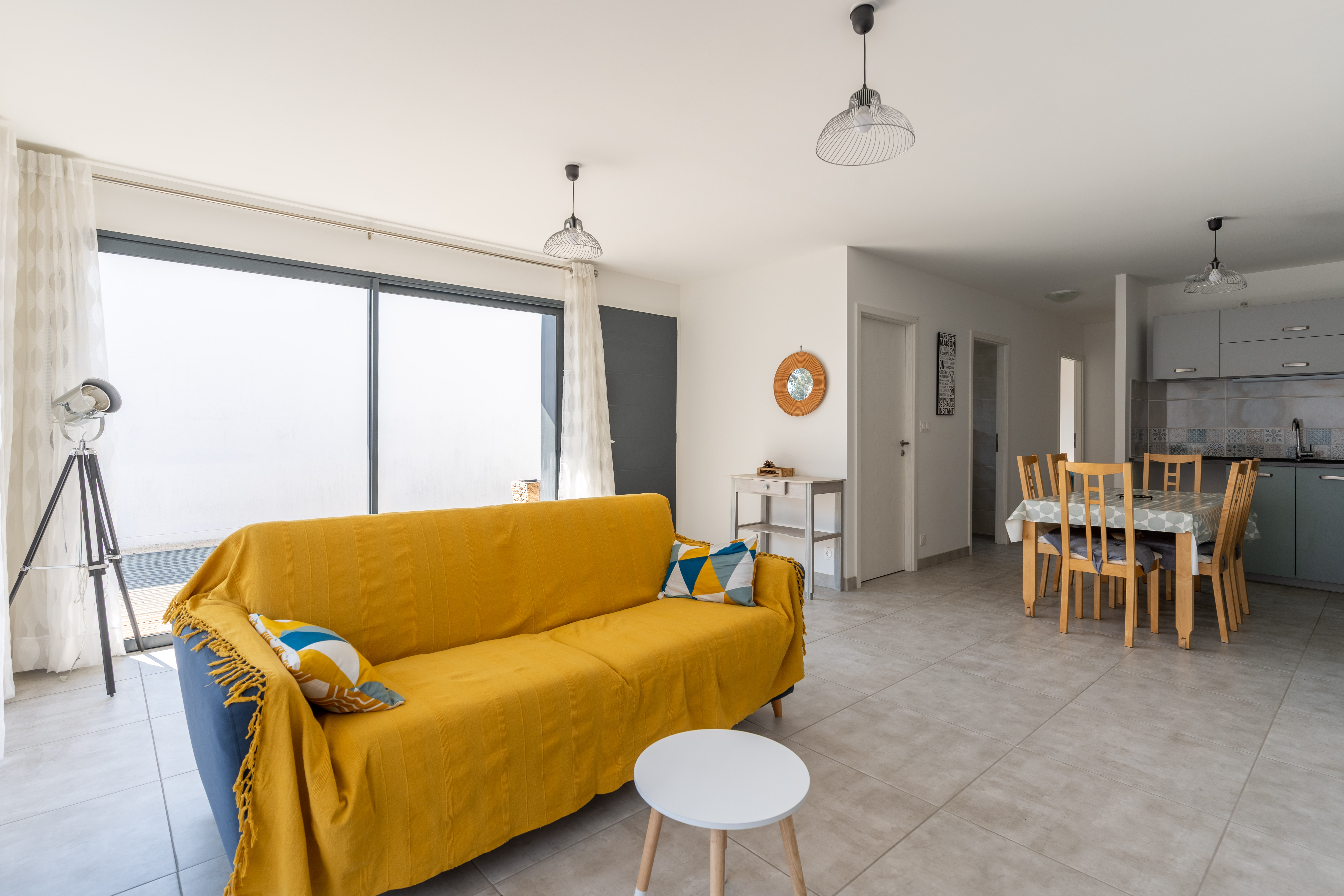 Pouvant accueillir jusqu’à 4 personnes, elle comprend un coin cuisine (réfrigérateur / congélateur, plaque de cuisson, micro-ondes, cafetière à filtre, bouilloire, grille-pain, airfryer) ouvert sur un séjour avec un clic-clac en 160 permettant deux couchages et une TV pour vos moments de détente. Vous disposerez également d'une chambre avec un lit en 140, d'une salle d'eau avec sèche-cheveux, d'un WC séparé et d'un lave-linge pour plus de confort.
