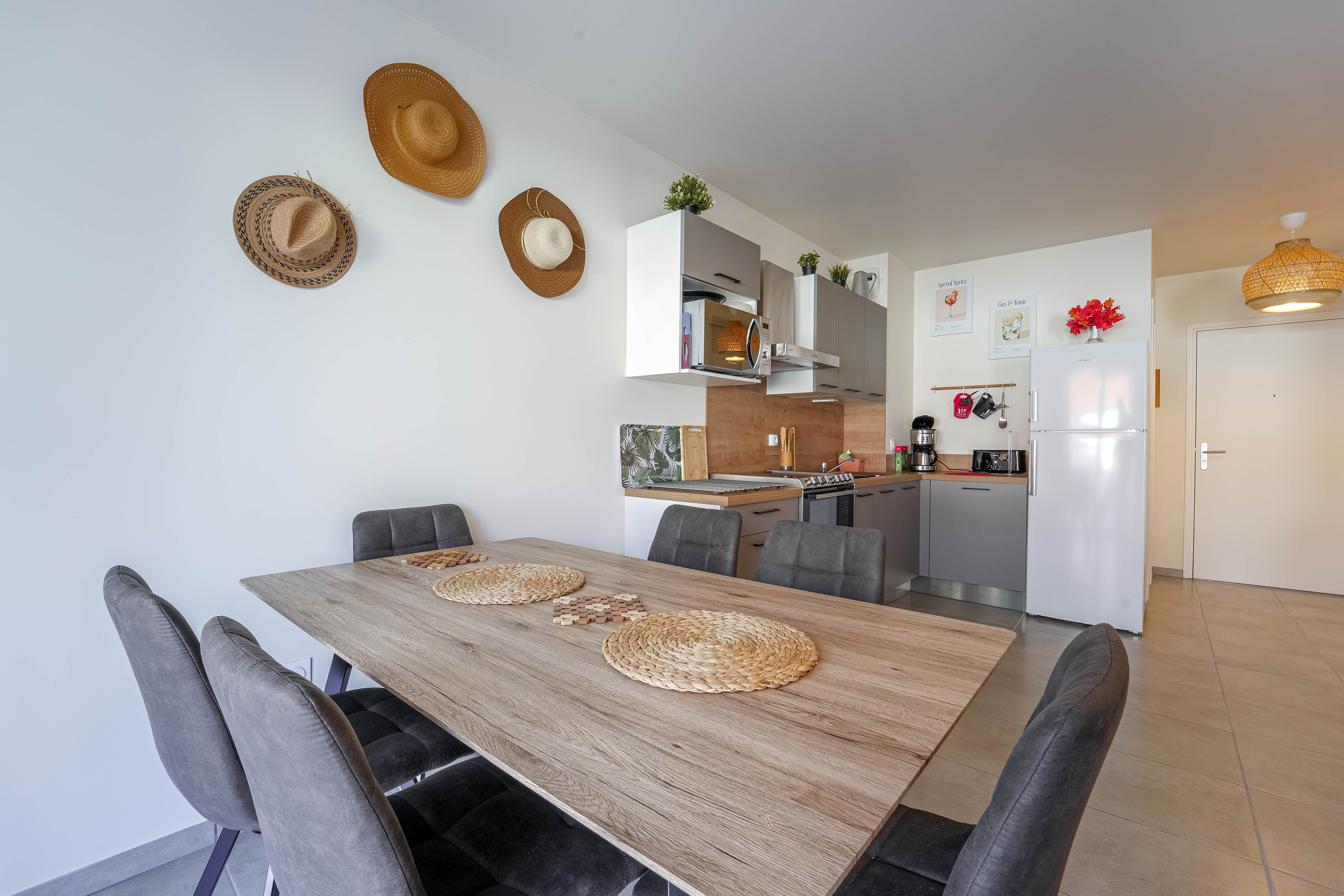 À l’extérieur, une agréable terrasse exposée Ouest, avec un salon de jardin, permet de profiter des repas en plein air ou simplement de se détendre après une journée à la plage. Une place de parking privative ainsi qu'un local à vélos communs sont mis à disposition.