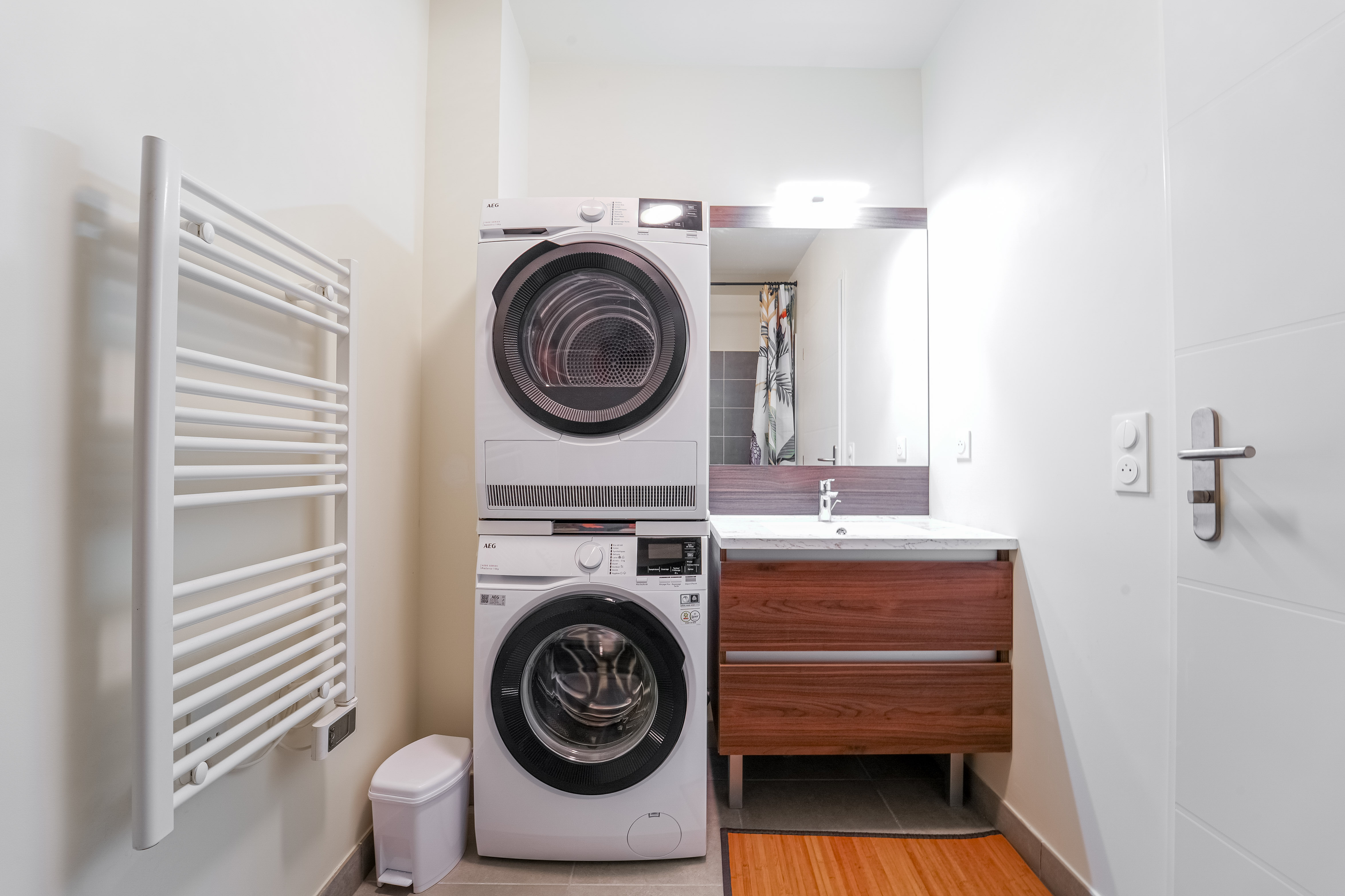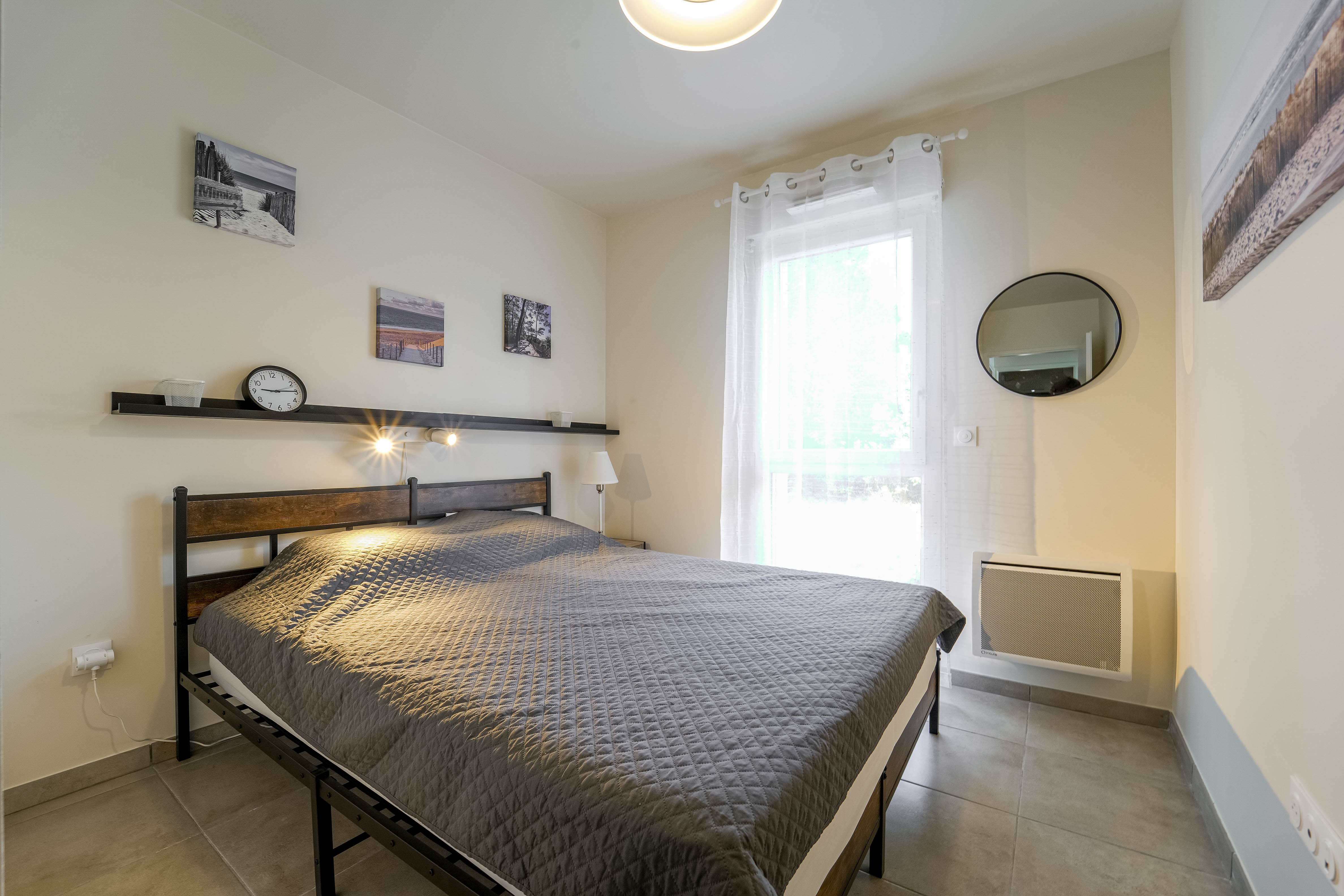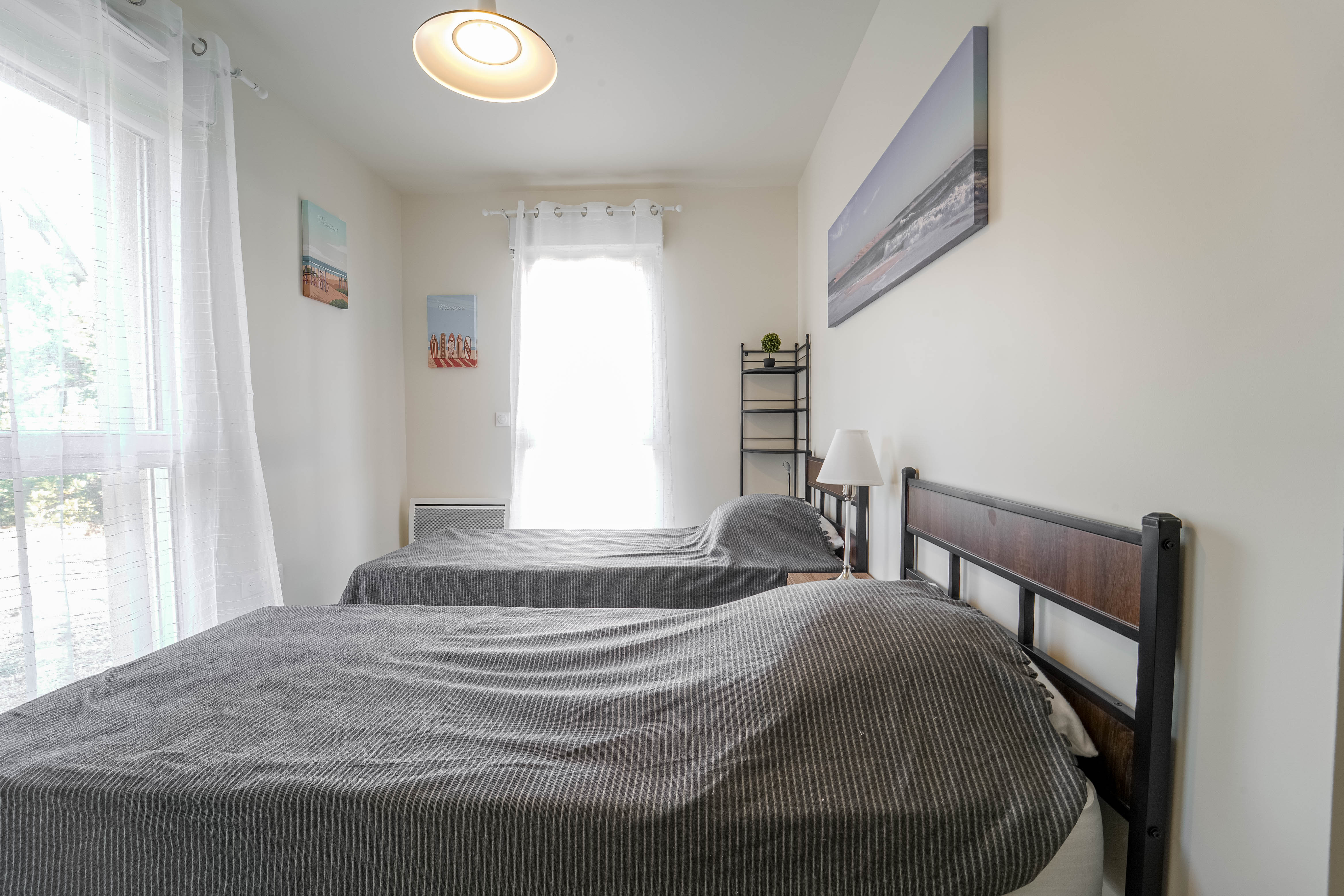 Le logement dispose de trois chambres pouvant accueillir jusqu’à six personnes. La première chambre est équipée de deux lits superposés en 90, la seconde de deux lits simples en 90, et la troisième d’un lit double en 160. Une salle de bain avec lave-linge et sèche-linge, une salle d’eau supplémentaire et un WC indépendant complètent l’ensemble.