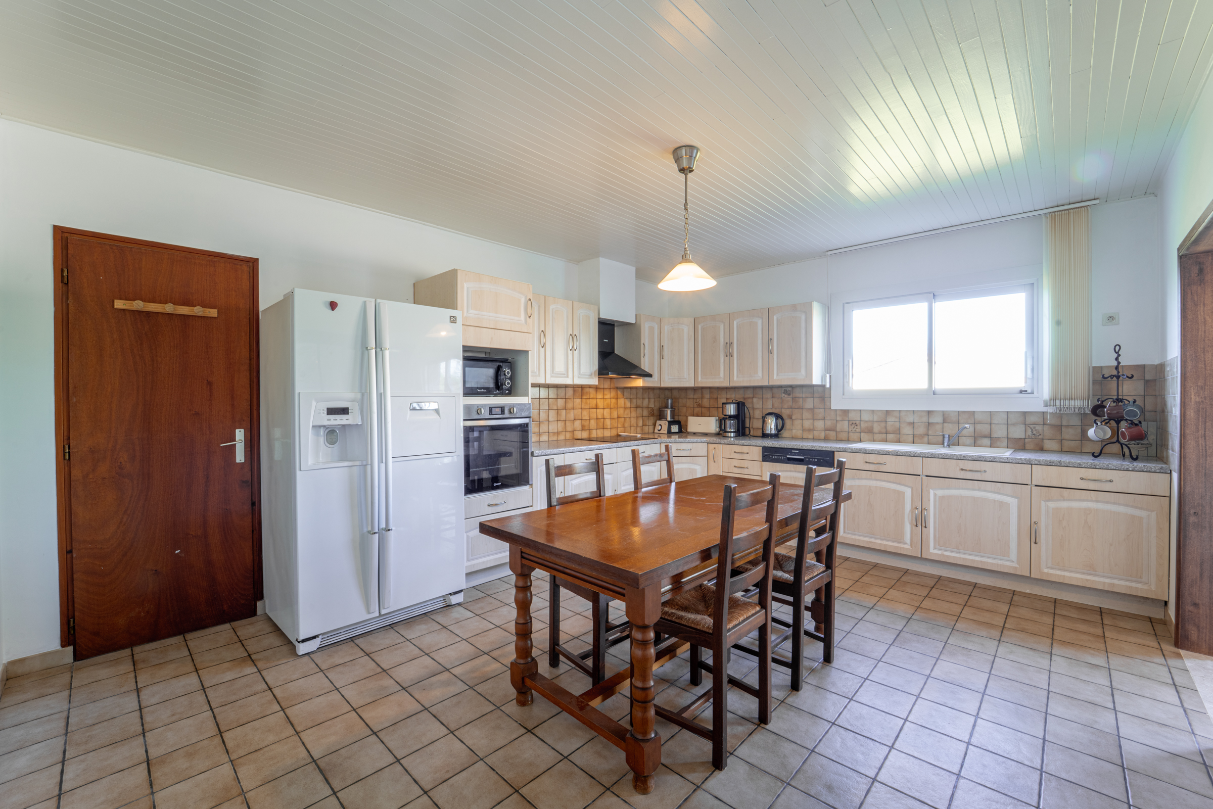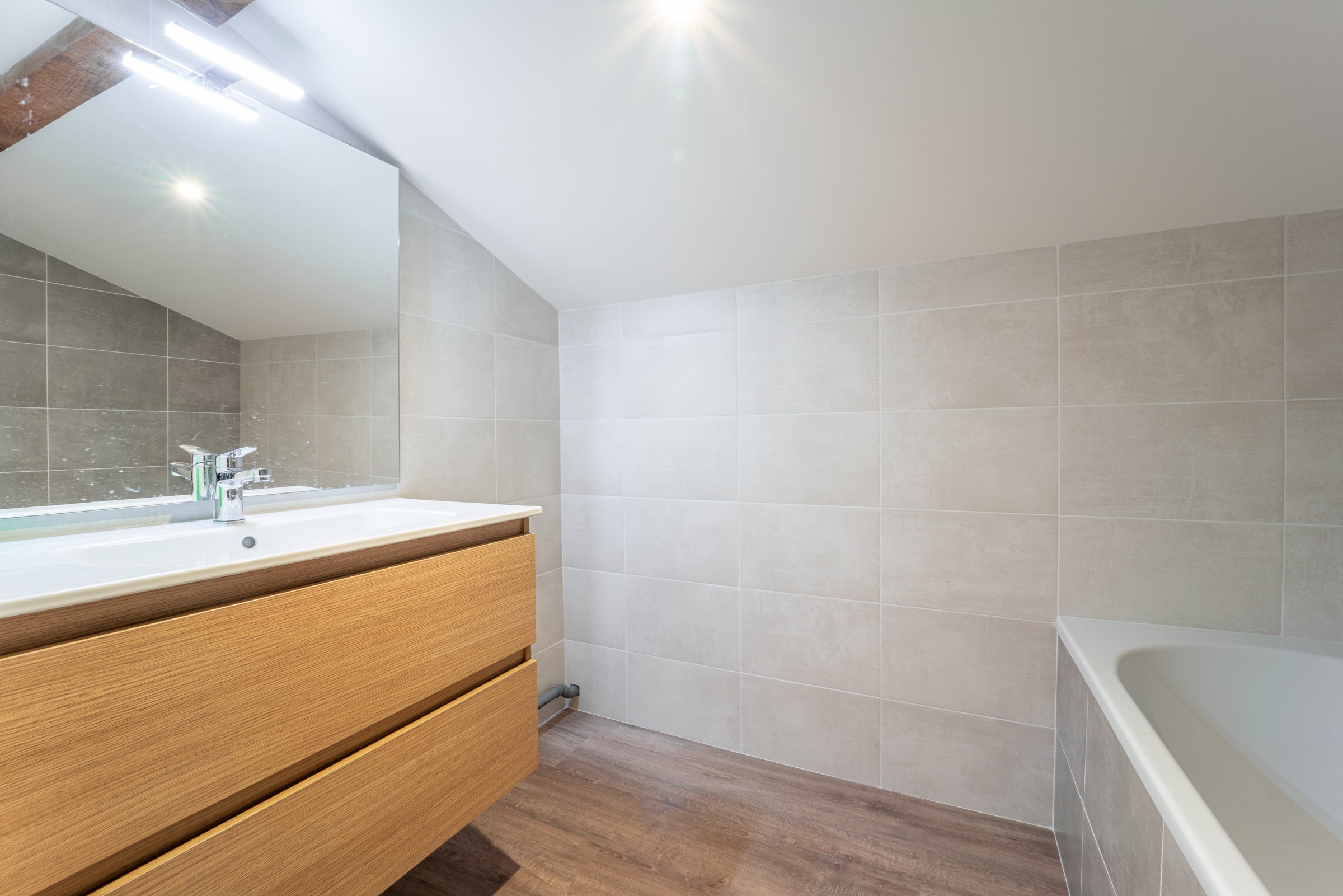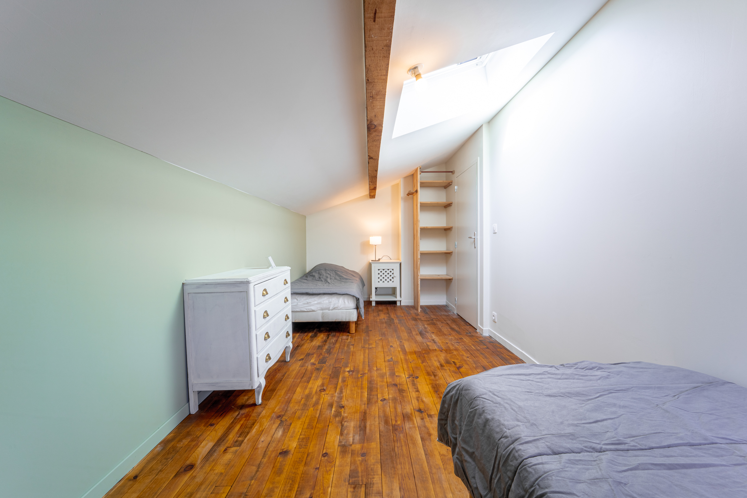 À l’étage, trois chambres supplémentaires sont aménagées et disposent d’un lit double et de trois lits simples. Une seconde salle de bains ainsi qu’un WC séparé complètent l’espace nuit et garantissent un confort optimal pour l’ensemble des occupants.