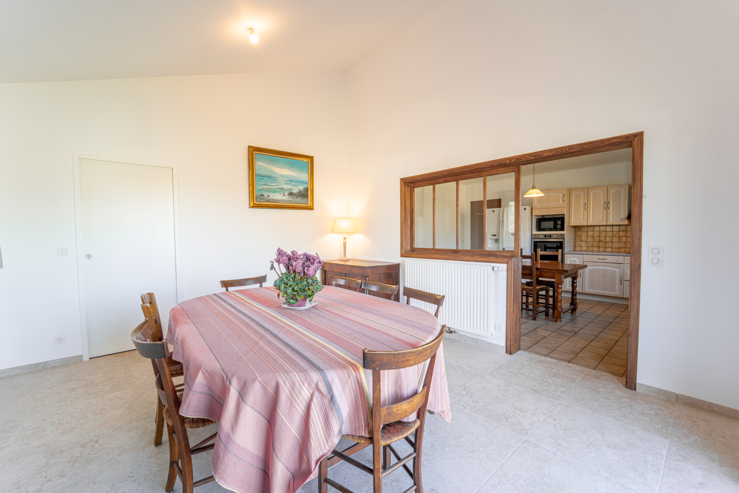 Au rez-de-chaussée, la maison propose un séjour avec télévision et WIFI ainsi qu’une salle à manger conviviale, idéale pour se retrouver autour de repas partagés. Trois chambres y sont aménagées et disposent au total de deux lits doubles et trois lits simples. Une salle d’eau ainsi qu’un WC séparé complètent ce niveau.