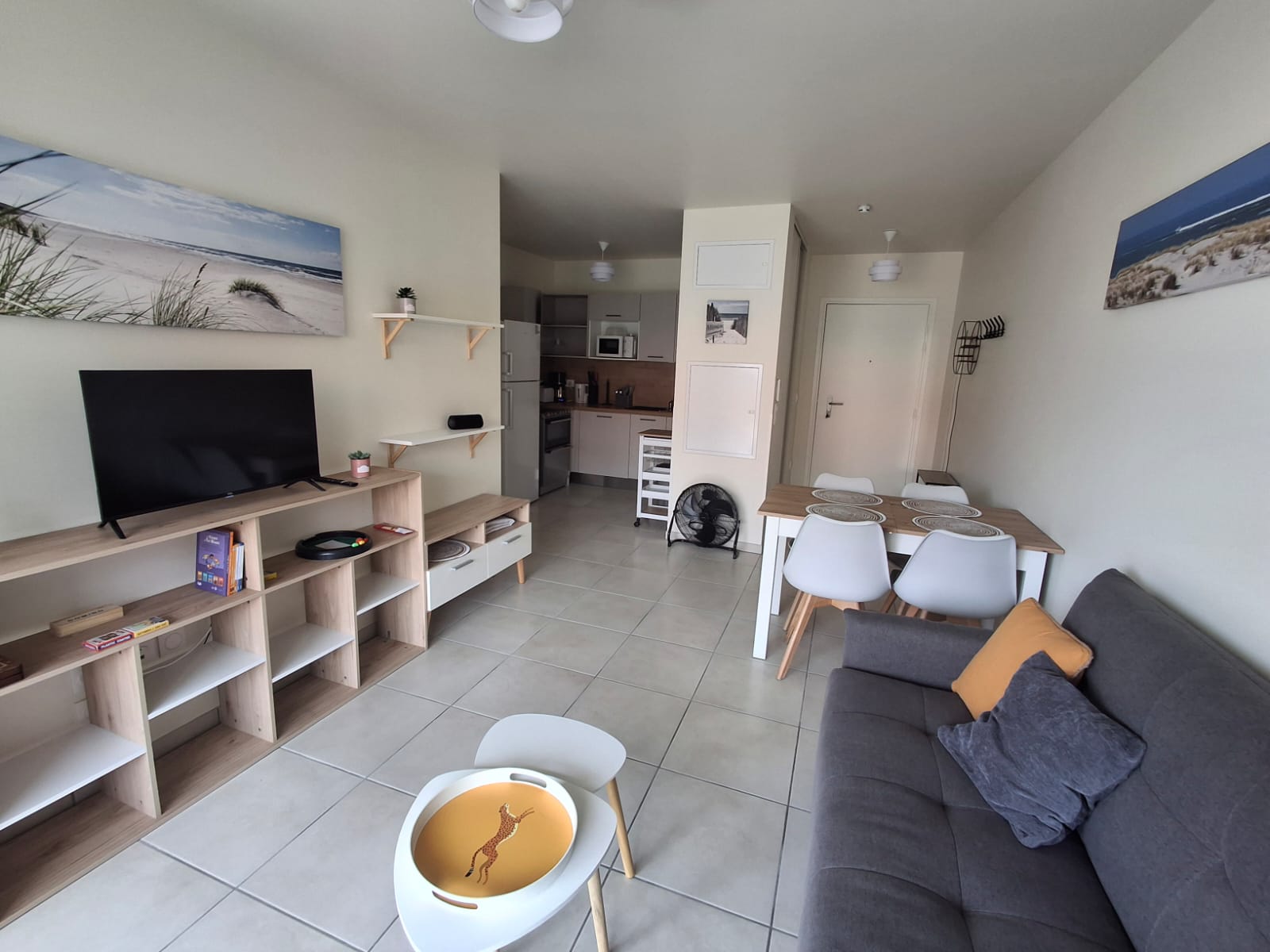 Venez découvrir le charme de Mimizan Plage dans cet appartement neuf et entièrement équipé, idéalement situé à seulement 400 mètres de l'océan et à quelques minutes à pied du centre de la station. Parfait pour accueillir jusqu'à 6 personnes, cet espace moderne et lumineux a été décoré avec soin pour vous offrir un cadre agréable et chaleureux pour vos vacances.