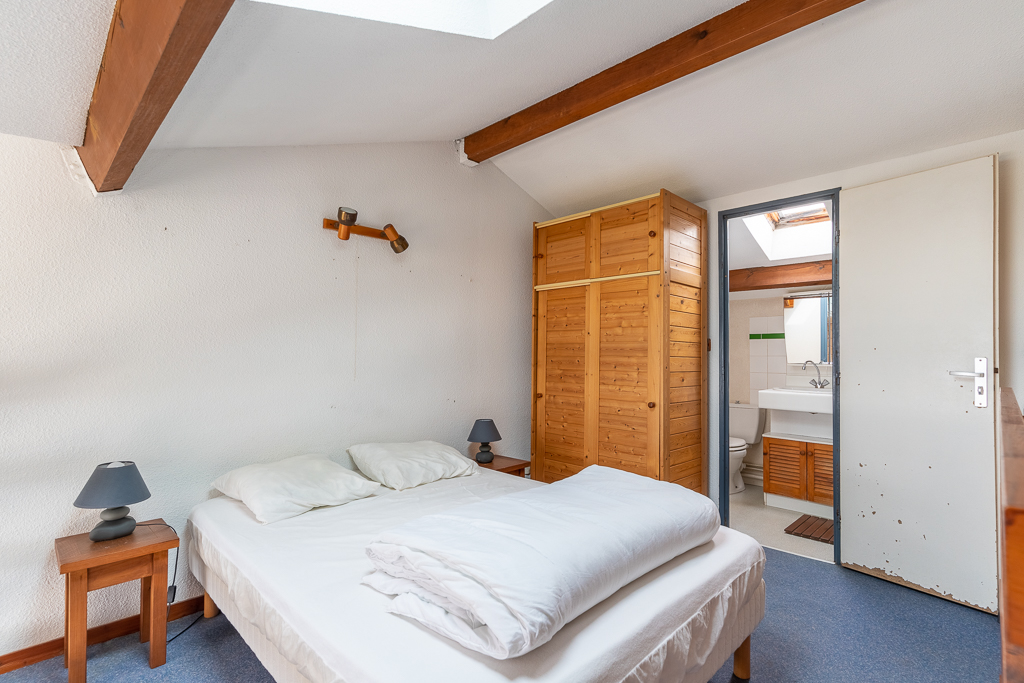 A l’étage, une mezzanine avec un lit en 140 et une salle de bain avec WC.
