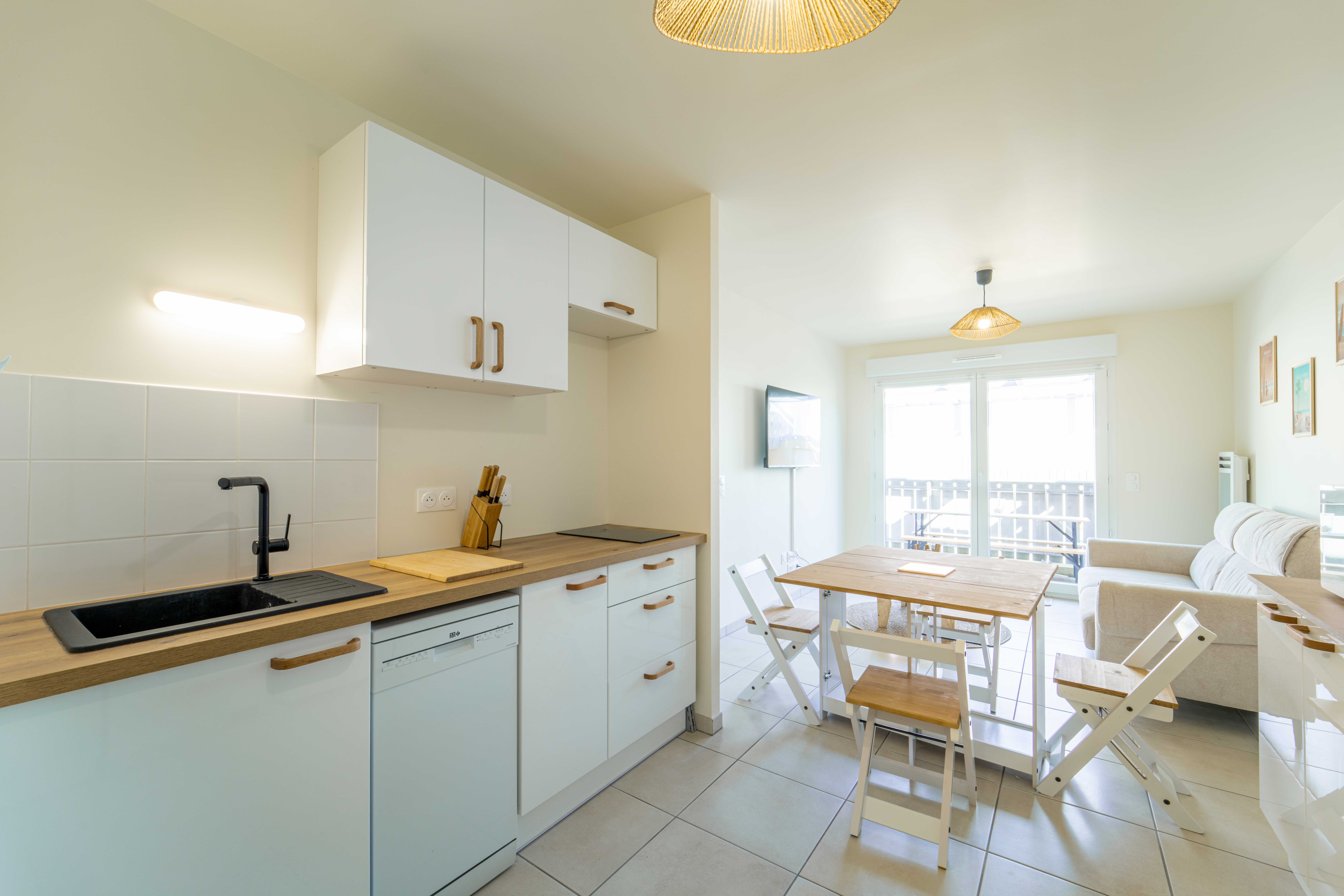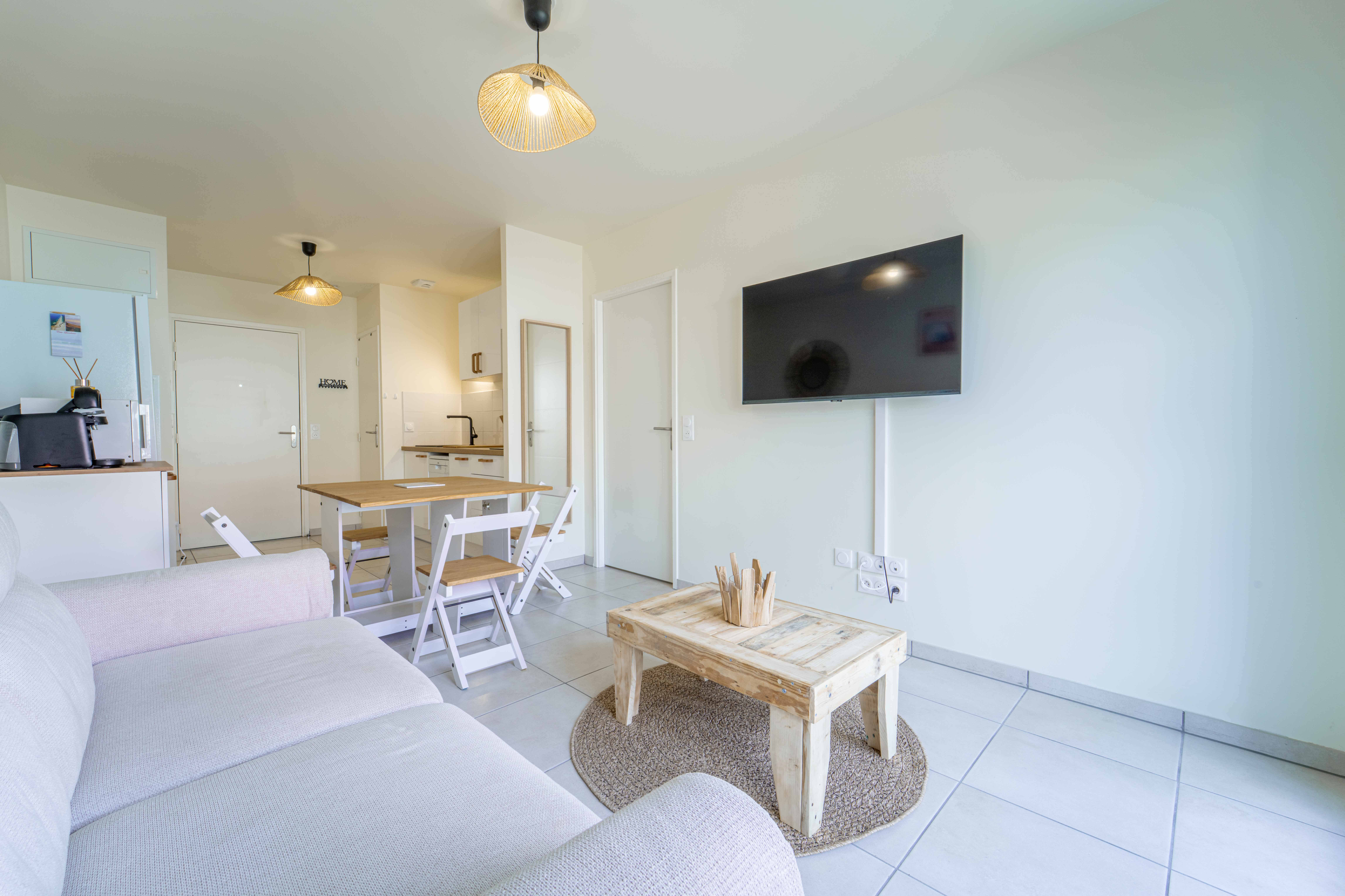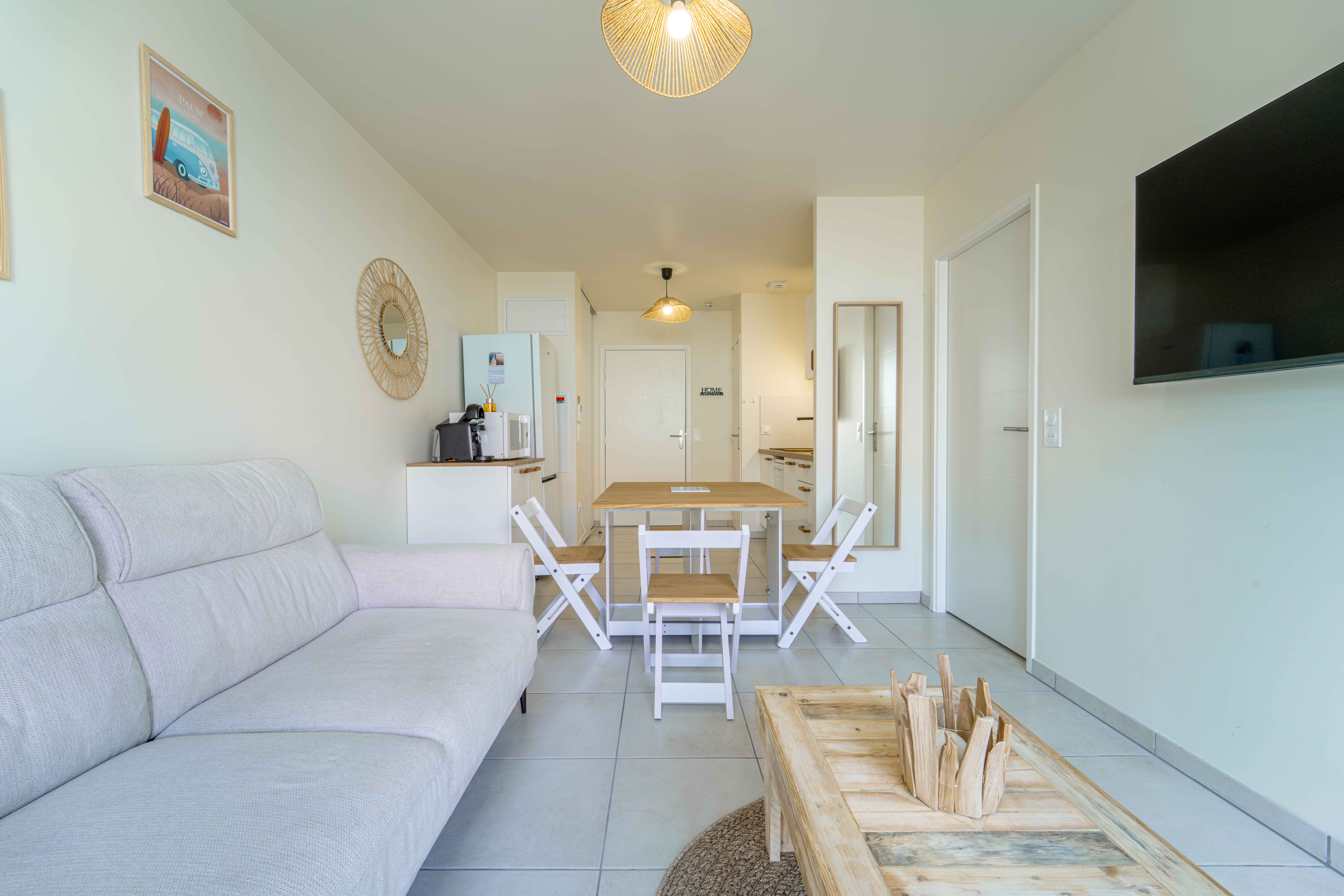L’appartement est entièrement équipé pour garantir votre confort : une cuisine avec réfrigérateur/congélateur, plaque à induction, micro-ondes multifonctions, cafetière, bouilloire et grille-pain, un séjour lumineux avec canapé convertible permettant d'accueillir 2 couchages supplémentaires et une télévision écran plat. Dans la chambre, vous retrouvez un lit double en 140 cm avec une literie de qualité, un lit d'appoint ainsi qu’une salle d’eau avec douche, WC et lave-linge. Vous profiterez également d’un balcon aménagé avec salon de jardin et transats, parfait pour vos moments de détente en extérieur. Enfin, une place de parking privative vous permettra de stationner en toute sécurité. Ce lieu est idéal pour passer un agréable séjour sur la côte, en toute tranquillité et à proximité de toutes les commodités.