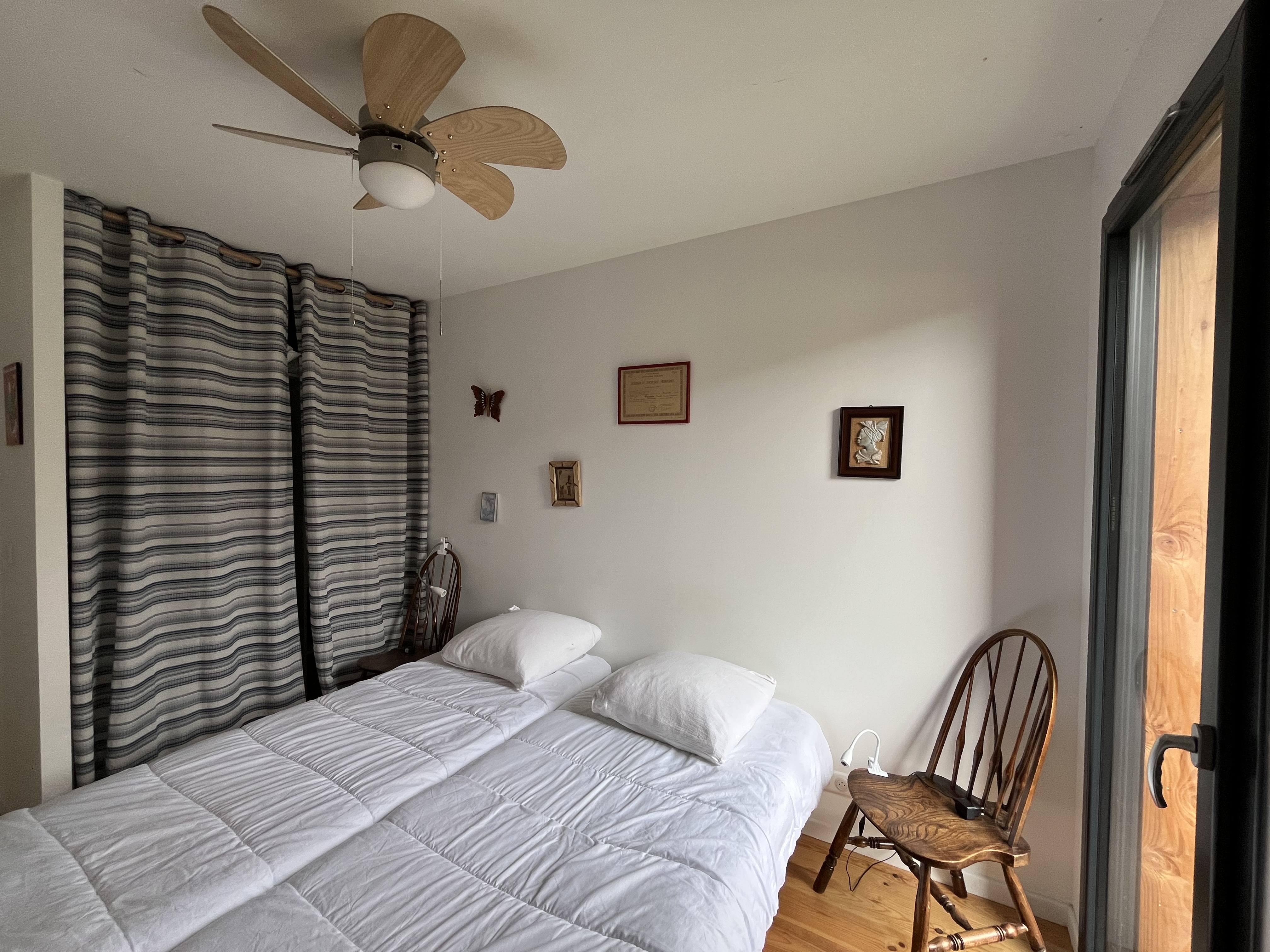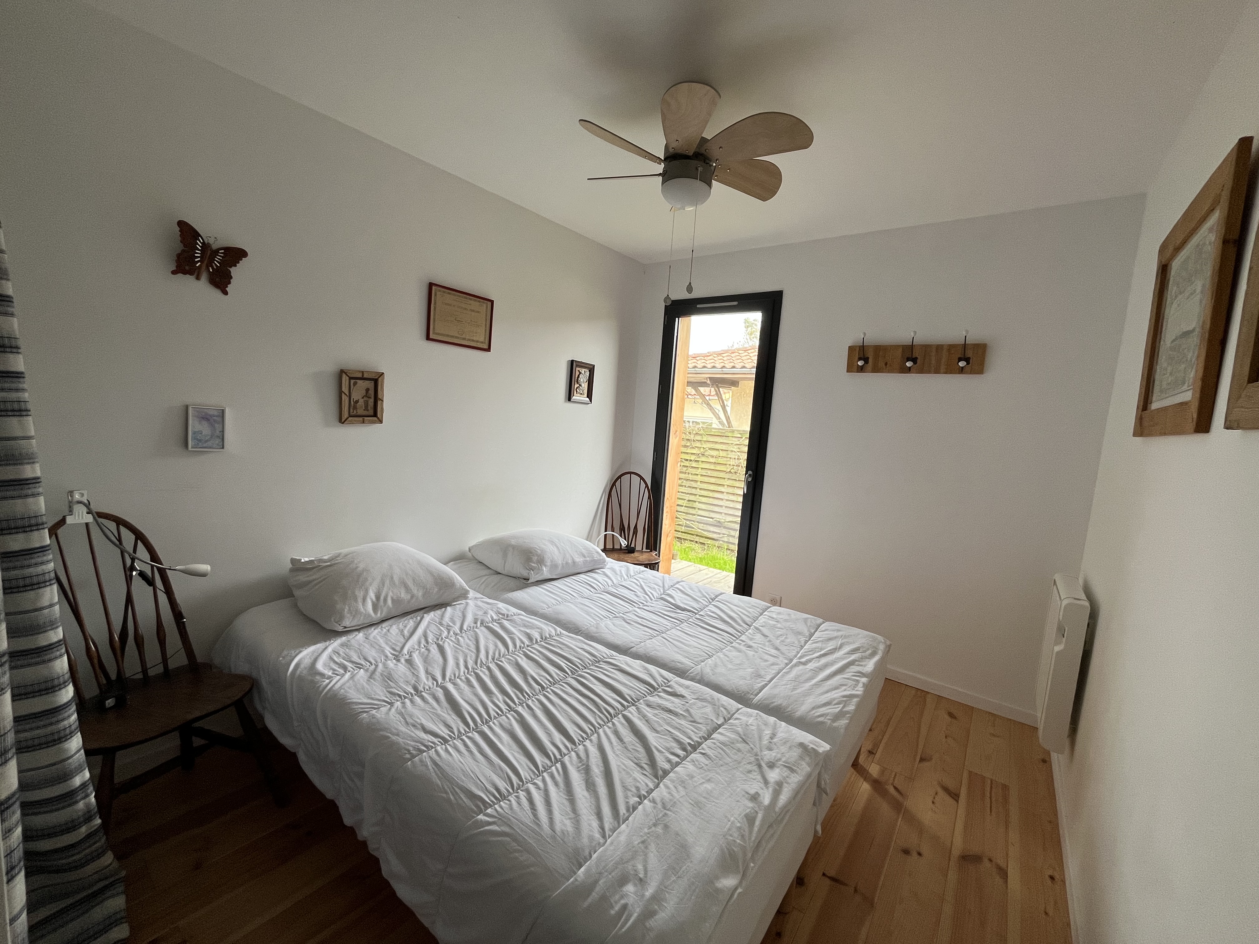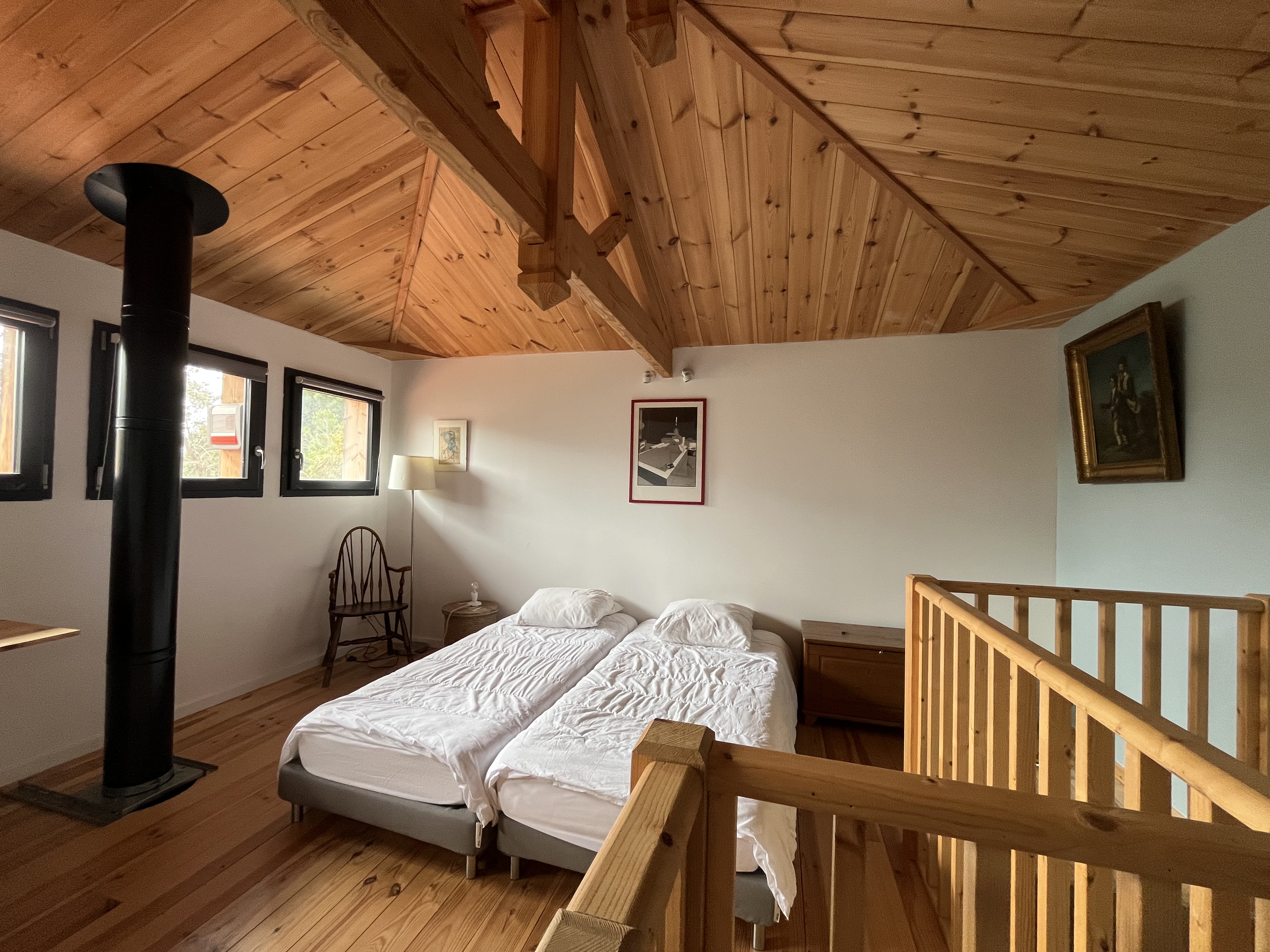 Côté nuit, la maison dispose de quatre chambres permettant d’accueillir confortablement jusqu’à 8 personnes. Trois chambres sont situées au rez-de-chaussée. La première avec deux couchages en 80 cm avec une avec salle d'eau intégré. La deuxième avec également deux couchages en 80 cm. De même pour la troisième. Une dernière chambre se trouve en mezzanine (pas de volet, seulement des rideau occultants) avec deux lits 90cm, apportant un espace supplémentaire apprécié.