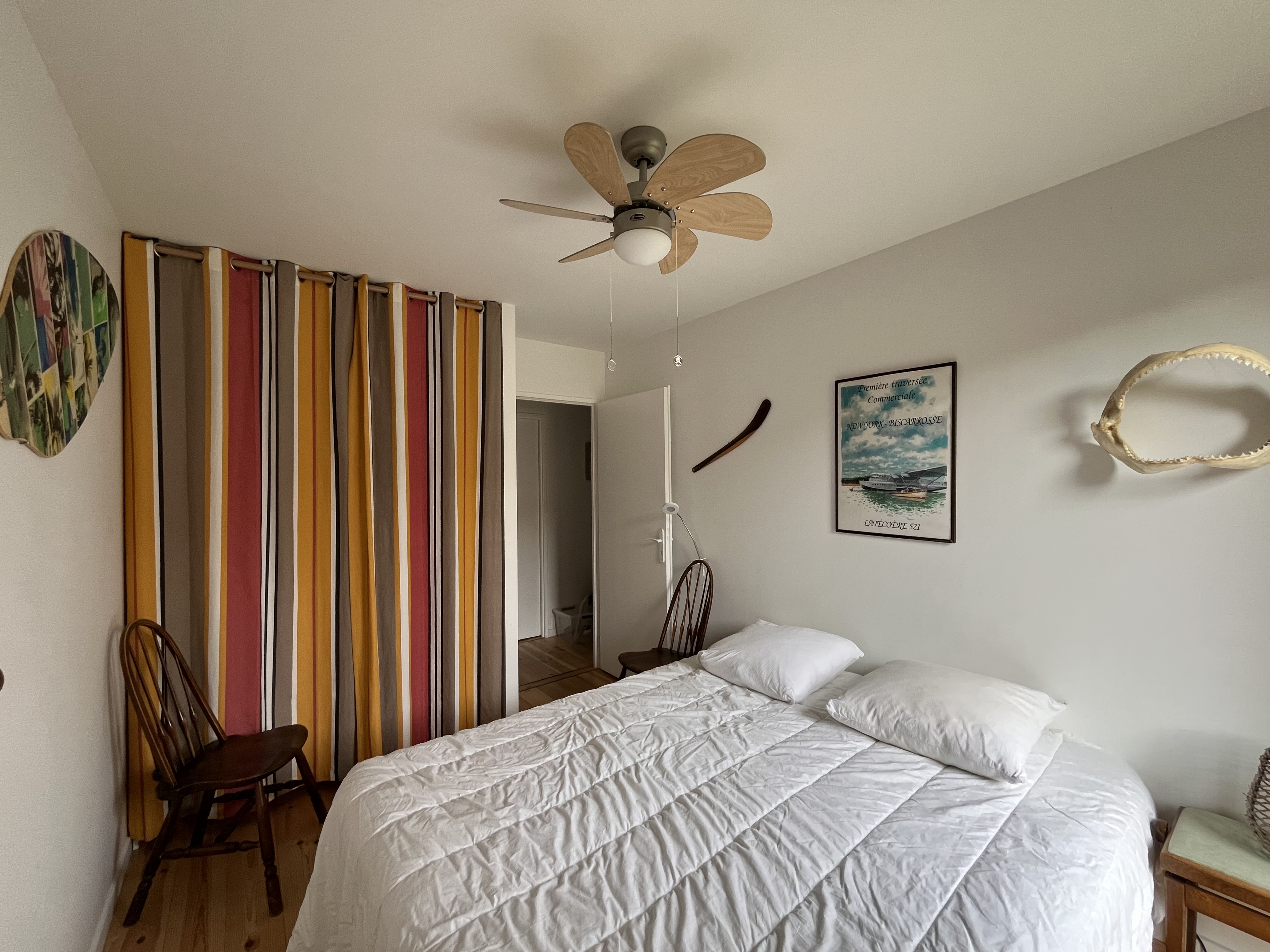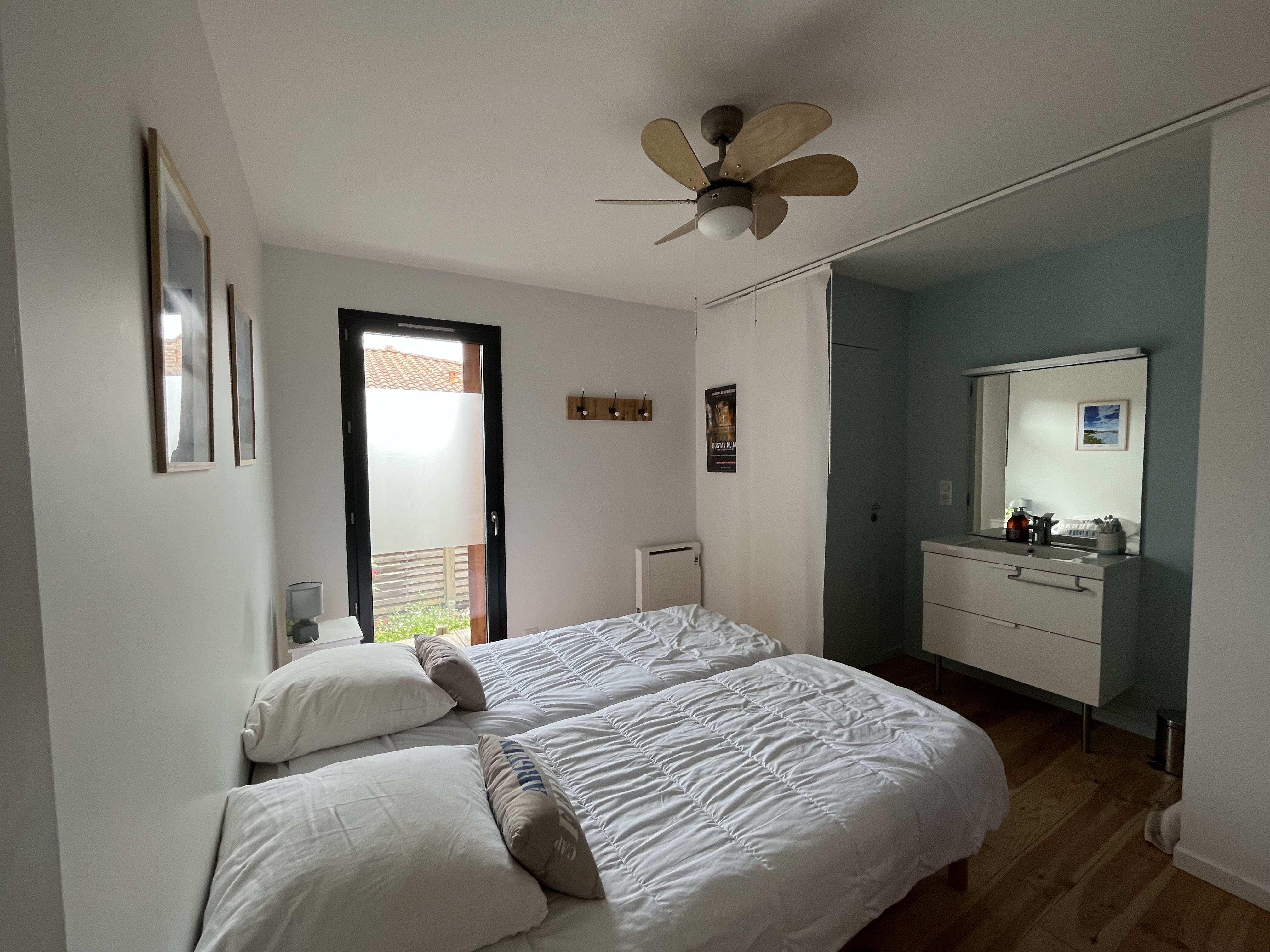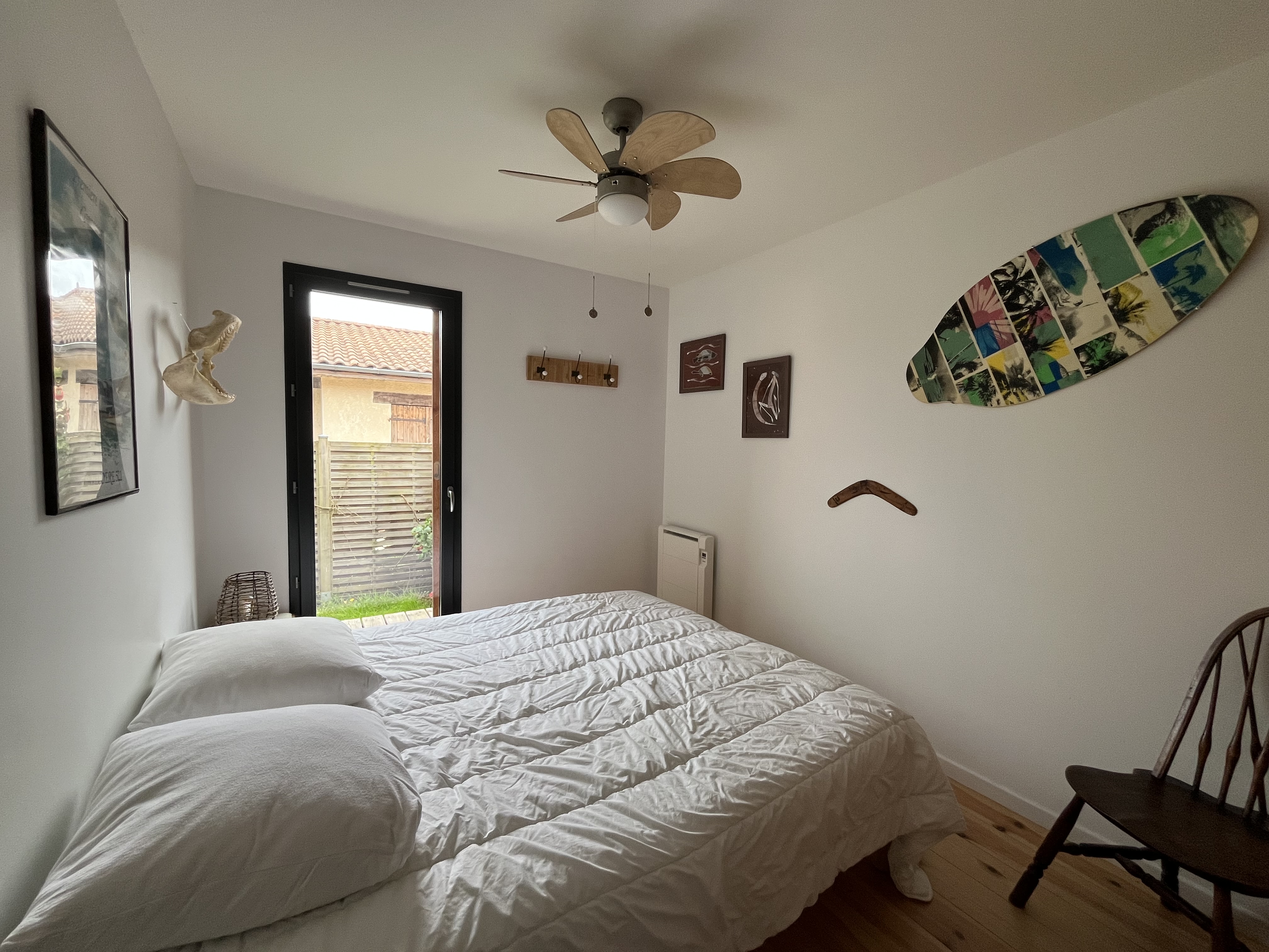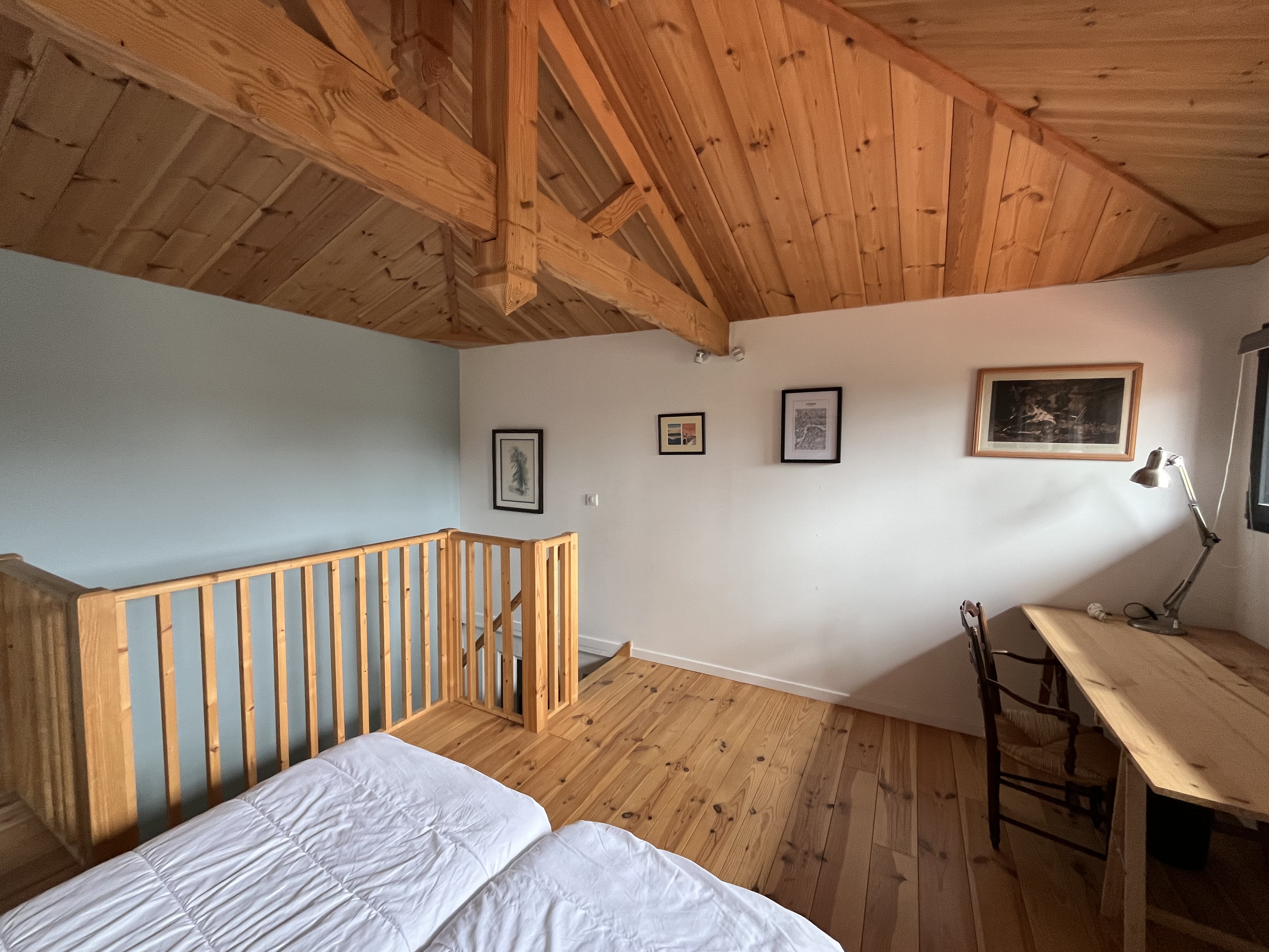 Côté nuit, la maison dispose de quatre chambres permettant d’accueillir confortablement jusqu’à 8 personnes. Trois chambres sont situées au rez-de-chaussée. La première avec deux couchages en 80 cm avec une avec salle d'eau intégré. La deuxième avec également deux couchages en 80 cm. De même pour la troisième. Une dernière chambre se trouve en mezzanine (pas de volet, seulement des rideau occultants) avec deux lits 90cm, apportant un espace supplémentaire apprécié.